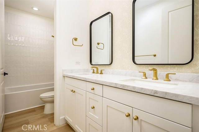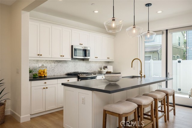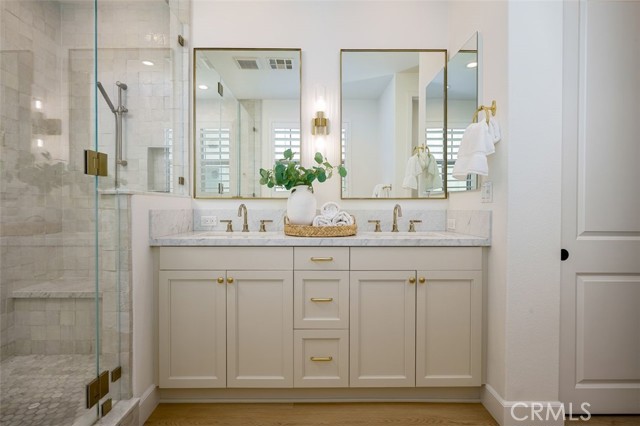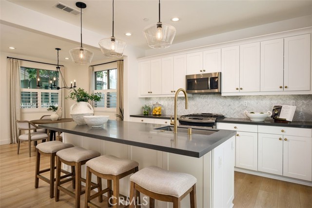 Set within the highly sought-after Trellis neighborhood of Esencia in Rancho Mission Viejo, this modern transitional home has been thoughtfully redesigned with a curated collection of recent upgrades. The design reflects a refined blend of timeless materials, modern comfort, and intentional design. Filled with natural light, the home features wide-plank flooring, upgraded baseboards, fresh interior paint, layered LED lighting, and designer fixtures throughout. The open-concept kitchen pairs quartz countertops, a farmhouse sink, upgraded hardware, a spacious island, and new high-end appliances, creating a space ideal for both everyday living and entertaining. French doors open to a tranquil backyard with a gas-lined fire pit, perfect for evening gatherings. Upstairs, the fully remodeled primary suite showcases Carrera marble countertops, custom cabinetry, a Zellige tile shower, and Rejuvenation brass hardware, along with both a walk-in closet and a second closet. The secondary bath has also been completely redesigned with Carrera marble, custom tile work, and Kohler/Rejuvenation fixtures. Additional highlights include owned solar under NEM 2.0, refreshed front landscaping and fencing, a new patio screen and an oversized two-car garage with epoxy flooring and built-in storage. Ideally located just steps from Esencia K–8 School, The Pavilion, parks, South Paw Dog Park, Montessori, and the community coffee shop, with access to Rancho Mission Viejo’s full suite of amenities including resort-style pools, fitness centers, community farms, tennis and pickleball courts, playgrounds, and more.