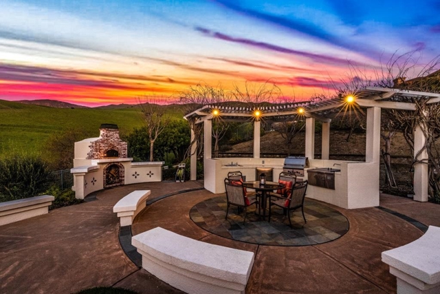 A Rare, 1-story opportunity awaits in the Avalon Estates exclusive hilltop gated community! Select few Plan 3's exist in a such a private location with an incredible view. Known for its welcoming floorplan for hosting indoor holidays, the backyard was especially designed for hosting the warmest gatherings with not only a sunset backdrop of the bay, but with the comforts of a custom wood fired brick oven and outdoor kitchen. Nestled against the majestic hills, enjoy peaceful views, invigorating walks and 24 hour gated security away from the hustle & bustle. Welcomed by a portrait wall of windows the Living & Dining room remain ready to receive. The well appointed expansive kitchen features an oversized island, walk-in pantry, gas range with powerful ventilation hood & more. Overflowing into the sun filled breakfast nook and into the family room with a picturesque wall of windows towards sunsets and city lights. The oversized primary suite features a fireside reading nook, soaring windows and luxurious bathroom and walk-in closet. Spacious secondary bedrooms lead to a versatile, self-contained Junior Suite featuring separate backyard access, private bathroom, walk-in closet and wetbar. Maximize your time spent up & away at home and enjoy this next chapter of life at Avalon Estates!