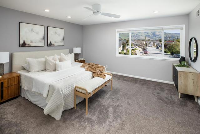 Nestled in a prime location overlooking serene open spaces and breathtaking rolling hills, this beautifully updated tri-level home offers the perfect blend of comfort, style, and convenience. Step into the heart of the home-a chef's dream kitchen featuring sleek quartz countertops, custom tile backsplash, an induction cooktop, convection oven, Insta-Hot and filtered water, and stainless steel appliances. With a spacious walk-in pantry, ample cabinetry, and a versatile island, this kitchen is designed to make cooking and entertaining a joy. The main living area boasts warm maple hardwood floors and recessed lighting, creating a welcoming ambiance. Downstairs offers flexibility with laminate flooring, recessed lighting, a split heat/AC system, and a full bath with heated towel bars. This space is perfect as a cozy family room retreat, guest suite, or au pair unit. All bathrooms have been thoughtfully updated, while energy-efficient features like a solar system keep utility bills low. A dedicated indoor laundry room with front-load washer and dryer adds to the home's convenience. Located near light rail, Penitencia Creek Park (complete with a dog park), the Noble Library, and local shopping, this home truly has it all. Don't miss the chance to make this North Valley gem yours!