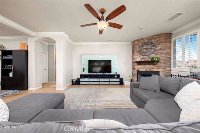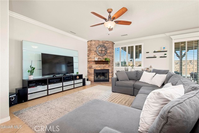 WELCOME HOME! TO THIS BEAUTIFULLY CUSTOMIZED SINGLE STORY HOME AT THE END OF THE CUL DE SAC. The Quality begins with the Manicured Landscaping and Rock Accents in front. You enter to a Bright Open Floorplan with Rich Crown Molding, a Rock Accented Column delineating the Formal Dining Room, great for entertaining. The Great Room beyond is adjacent to the Kitchen, perfect for family living. The Great Room features a cozy Stacked Stone Fireplace with Decorative Tile Accents outside and Fire Glass instead of logs. The Surround Sound makes this a great theatre room for family nights. The chef in the family will enjoy this Kitchen which has Lots of Cabinets including a Large Pantry area, plenty of Counter space, Decorative Tile, Stainless Appliances (Refrigerator can stay) and a Breakfast Nook. The Master Bedroom is on one side of the house and secondary bedrooms on the other. You'll love the Closet World walkin Closet in the Master! The Master Bath features Dual Sinks, a Soaking Tub and Separate Shower. All of the bedrooms have Ceiling Fans for warm summer nights. Throughout this home and even in the garage are Lovely Plantation Shutters. The Indoor Laundry Room features Cabinets to keep your supplies neat and orderly. SMART Features in the house include: Schlage Front Door Lock, Nest Thermostat, Doorbell and Cameras, Garage Door Opener and Low Voltage Lights. The Garage features an Insulated Roll up Door, good Storage and an Epoxy Floor. And the back yard is as nice as the front! It features a Covered Patio with recessed and string Lights, a TV Hookup and a Raised Concrete seating area against the back wall. And there are two large grass areas great for kids and pets. The wide side yard could be converted to RV parking. This gorgeous home is definitely Move In Ready. Bring your Family!