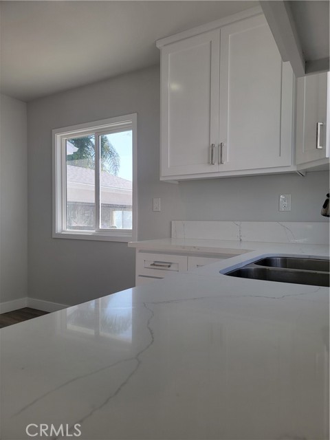 Just Listed for Sale! Amazing opportunity for any buyer looking for a bargain! Compare and save big! Over $175,000+ in upgrades! Property consists of (3) Bedrooms, (1) full bathroom + 1/2 restroom. Property measures approximately 1,139 Sq. Ft of living space on a 6,008 Sq. Ft Lot. Built in 1956 but remodeled in 2026. Upgrades include: New roof, new dual pane vinyl windows, new kitchen cabinets with quartz counter tops, upgraded flooring throughout the whole house, updated plumbing, new upgraded electrical panel with meter and whole house wiring, updated lighting fixtures, doors, wrought iron side security gates, attached garage with recessed lighting and drywall finish. Restroom has new tub, new tiling, new lighting fixtures, a must see to appreciate. Newly installed mini split heating and air conditioning in living room. Indoor laundry room with cabinetry adjacent to kitchen. Exterior features include: new stucco, freshly installed sod landscaping with automatic sprinkler system, private back yard with existing block wall all around! All work done with building permits from the city of Santa Ana, final issued 2/2/2026. Excellent location nearby Santa Ana college less than 2 miles away; Less than 10 miles away to Disney Land Theme Park and surrounded by 5, 22, 405 Freeways. Shoulders surrounding cities of Orange, Garden Grove, Anaheim! A true Gem.