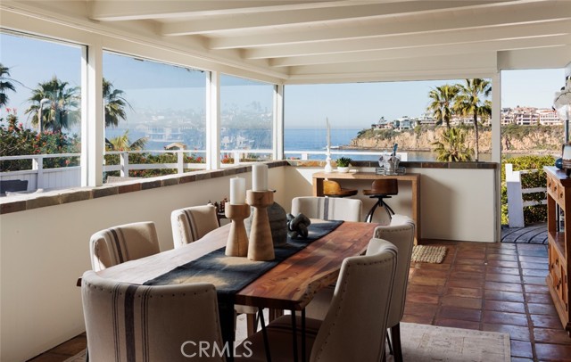 Offered for the first time since 1966, this single-level Emerald Bay residence presents a rare opportunity to own a legacy coastal property with extraordinary ocean views. Once owned by a Hollywood actress during Laguna Beach’s storied creative era, the home offers timeless character, privacy, and an irreplaceable setting. Situated on an approximately 8,100-square-foot lot, the home spans just over 2,300 square feet with three bedrooms and a study, all on one level. Panoramic views extend over Emerald Bay’s private beach to the Pacific Ocean and Catalina Island beyond, complemented by the sound of crashing waves. A large front courtyard and expansive ocean-view deck provide ideal spaces for entertaining and outdoor dining. The property is conveniently located just above a community stairway with direct beach access and only a few homes from the south gate for easy entry and exit. With significant potential to remodel, expand, or build new, this is a rare opportunity to create the ultimate Emerald Bay beach retreat in one of Laguna Beach’s most coveted communities.