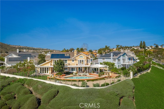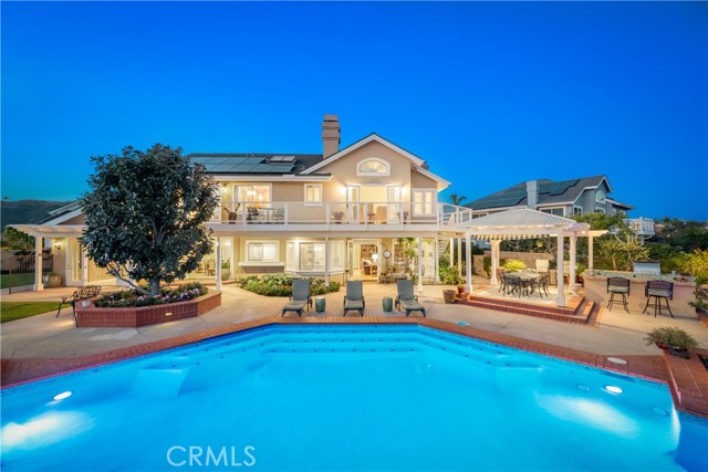 Experience coastal living at its finest in this stunning residence, nestled within the prestigious guard-gated enclave of Crest de Ville. Sited on one of the most expansive lots measuring nearly 14,000 square feet, 44 New Haven perfectly balances sophisticated design with an inviting, airy atmosphere, offering rare 180-degree unobstructed views and absolute privacy. The heart of the home is the newly refreshed kitchen, a bright and modern culinary space that flows seamlessly into the living areas. It features high-end appliances, crisp finishes, and a charming breakfast nook. Entertainment areas abound, from the double-height formal sitting room with an adjacent dining room and dedicated wine cellar to the resort-style backyard. Accessed through French doors, it offers an outdoor paradise complete with a a custom pool, spa, and fully equipped outdoor kitchen. The thoughtful floor plan includes a coveted main-level guest ensuite and a private home office which could easily function as additional sleeping quarters. Upstairs, the primary retreat serves as a sanctuary with its own fireplace, a spa-like stone-clad bath, a walk-in closet, a multifunction bonus room, and a deep balcony perfect for watching the sunset over the ocean. Details of every space have been considered, from a spacious upper-level den with custom built-ins to extensive technical upgrades like solar panels and modernized climate control. Residents of Crest de Ville enjoy 24-hour security and premium community amenities, all while being just minutes from world-class beaches, luxury resorts, and premier shopping.