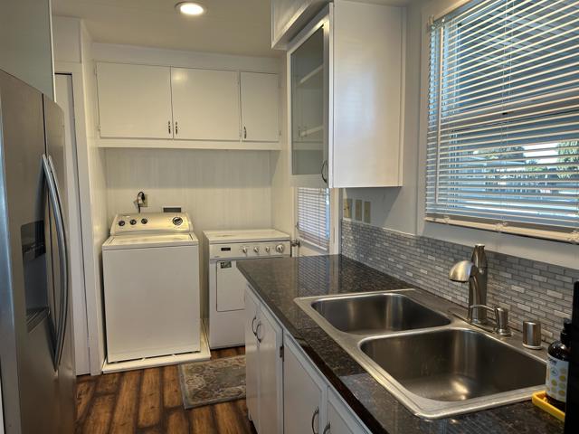 BEAUTIFULLY UPDATED 55+ MOBILE HOME — NO PROPERTY TAXES! Welcome home to this beautifully updated 2-bedroom, 2-bath mobile home offering 960 sq. ft. of comfortable living space in a desirable 55+ community. Enjoy a stunning remodeled kitchen featuring stainless steel appliances—refrigerator included—and dual-pane windows throughout for energy efficiency. The interior boasts brightly painted walls and two updated bathrooms, creating a cherry, move-in-ready feel. The home includes a dedicated laundry area with washer and dryer included, plus an enclosed catio—perfect for your feline friends or as a relaxing space to enjoy your day. Additional highlights include a storage shed and long covered parking. Buyer must be 55+ (all other occupants 18+) Low space rent: $823.73/month No property taxes! This beautifully maintained home is a must-see! Fireplaces: NO