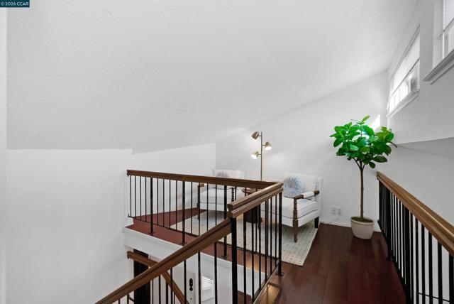 Light-filled and updated townhome in the heart of Hercules featuring 2 bedrooms, 2 bathrooms, a bonus room and a versatile loft space. Open-concept living area with vaulted ceilings, hardwood floors, and a cozy fireplace. Updated kitchen offers granite countertops, stainless steel appliances, ample cabinetry, and flows into the dining area. Flexible downstairs bonus/office space opens to a private, sun-filled patio, ideal for indoor–outdoor living and entertaining. Upstairs primary bedroom provides a peaceful retreat with generous closet space, an en-suite bathroom, and natural light. The upstairs loft offers excellent flexibility for work or relaxation, and the additional downstairs bedroom is well-sized with access to a spacious hall bathroom. Conveniently located near parks, trails, shopping, dining, waterfront amenities, and major commuter routes. This home is Move-in ready!