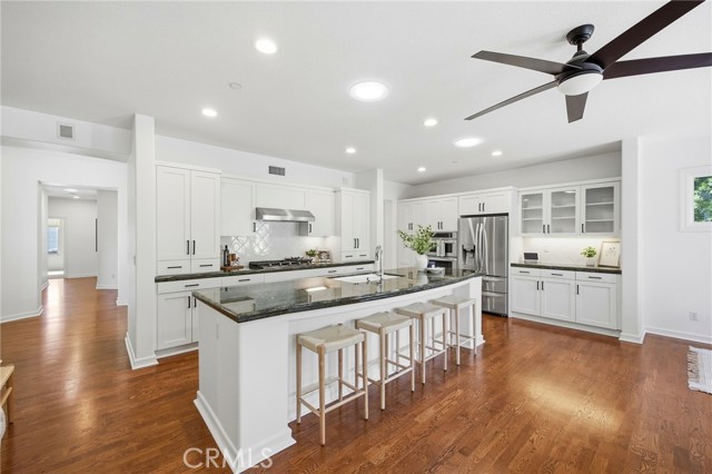 Welcome to 5 Camino Botero, San Clemente, a beautifully updated single level home tucked into one of the city’s most desirable coastal communities, The Gallery in Talega. This 3 bedroom and 2 bathroom light filled residence offers a seamless blend of comfort, functionality, and timeless style. The interior features an open and inviting floor plan with wide plank hardwood floors, recessed lighting, and oversized windows that flood the home with natural light. The remodeled kitchen is the heart of the home, showcasing crisp white cabinetry, granite countertops, stainless steel appliances, a large center island with bar seating, and ample storage, perfect for both everyday living and entertaining. The spacious primary suite offers a peaceful retreat with a large walk in closet and an upgraded ensuite bathroom featuring dual vanities, clean white finishes, and abundant counter space. Additional bedrooms are generously sized and versatile, ideal for guests, a home office, or den. Step outside to a private backyard oasis designed for year round enjoyment. The expansive paver patio is ideal for dining and entertaining, surrounded by lush landscaping and mature greenery that create a serene and private setting. Additional highlights include paid solar, a full home repipe, central air conditioning, ceiling fans, built in cabinetry, an indoor laundry area, and an attached two car garage. Located close to world class beaches, hiking trails, shopping, dining, and San Clemente’s vibrant downtown, this home offers the best of coastal living in a quiet residential setting. 5 Camino Botero is a rare opportunity to own a turnkey, single level home in one of San Clemente’s most sought after neighborhoods.