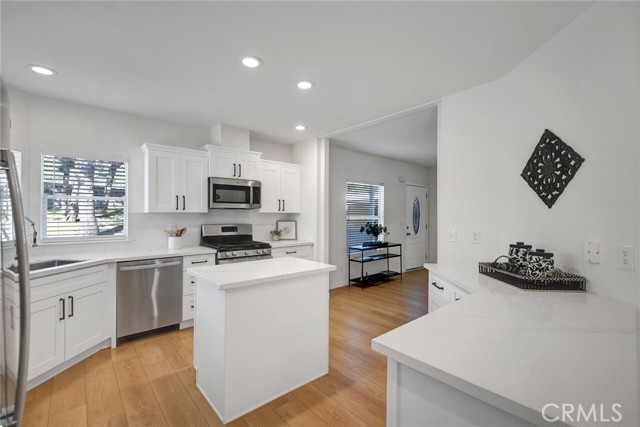 Step into easy, elegant living at Casa Valente Unit #42, a beautifully updated home located in a sought-after 55+ community designed for comfort, connection, and convenience. This spacious 3-bedroom, 2-bath residence offers approximately 1,680 sq. ft. of bright, open living space with a layout that feels both welcoming and functional. The redesigned kitchen is a true showpiece, featuring quartz countertops, brand-new stainless-steel appliances, and a generous center island that’s perfect for morning coffee, casual meals, or entertaining guests. The open living and dining areas create a seamless flow, making the home feel light, airy, and ideal for both quiet evenings and lively gatherings. Durable, modern vinyl flooring runs throughout the home, delivering a clean, contemporary look with easy upkeep—perfect for a low-maintenance lifestyle. The well-proportioned rooms and flexible floor plan offer plenty of space to relax, host, or personalize to your taste. Enjoy the perks of community living with access to a sparkling pool and spa, a social clubhouse, and peaceful walking areas—all just steps from your front door. Conveniently located near shopping, dining, and major freeway access, this home offers the perfect blend of tranquility and everyday accessibility. Move-in ready and thoughtfully updated, Casa Valente Unit #42 is your opportunity to enjoy comfort, style, and an active community lifestyle—all in one beautiful package.