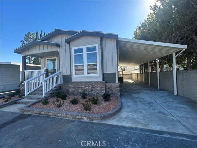 TURNKEY MOVE IN READY Brand new manufactured home sits in senior community with low space rent. Beautiful home includes open floor plan, high ceilings throughout, Large hard surface kitchen island, w/plenty of kitchen, cabinet and countertop space. Stainless steel refrigerator, dishwasher, stove, microwave appliances included. Wood window blinds throughout home, Laminate flooring, carpet in the bedrooms, inside laundry room, master bedroom includes walk in tile shower with glass door, double sink, covered front porch, landscape ready, this home includes outside beautiful brick work, extra-long covered driveway.