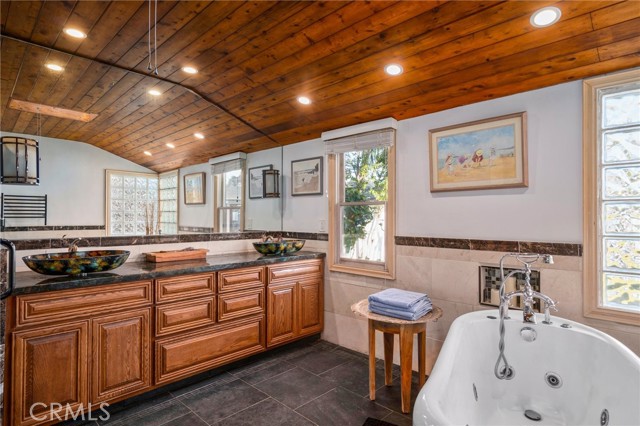 Set within the prestigious, guard-gated enclave of Monarch Bay, this stunning single-level estate offers nearly 5,000 sq. ft. of refined coastal living on one of the community’s largest lots. Located on a tranquil cul-de-sac, the home welcomes you through an expansive gated courtyard into a sprawling retreat designed for both relaxation & entertaining. The lush grounds feature a covered patio w/skylights, an inviting outdoor fireplace & views of Three Arch Bay’s hills & evening lights. Beyond the grand custom entry door, the magnificent great room boasts soaring ceilings, stacked-stone columns, & a floor-to-ceiling marble fireplace, with glimpses of the ocean. The spacious kitchen features stone countertops, an island, stainless steel appliances, an oversized walk-in pantry, & a gracious nook. The expansive primary suite is a private sanctuary, complete with a cozy fireplace, a large walk-in closet, & a French door leading to the serene rear yard. Its luxurious spa-like bath showcases an oversized frameless glass shower, a clawfoot soaking tub & heated towel rack. A secondary primary suite offers elevated ceilings, a walk-in closet, a remodeled marble-accented bath, & a French door opening to the ocean-facing backyard. Designed for versatility, the home also includes two additional bedrooms plus an oversized bonus room featuring an exotic wood ceiling, a stone fireplace, and French doors leading to the courtyard. The rear yard is a peaceful oasis w/mature trees—including Japanese pine, grand magnolia, and oak—complemented by custom stone benches, onyx lighting, a relaxing sauna & views. Additional highlights include exquisite 24” Celini Argento tile, luxuriously remodeled bathrooms, custom lighting, solid wood doors, spacious laundry room with/custom marble pet-washing shower & a massive three-car garage. A separate casita serves as a private office or gym, offering picturesque views of the front grounds & hillside beyond. Residents of Monarch Bay enjoy exclusive access to resort-style amenities including tennis & pickleball courts, a community & dog park, a playground, and the spectacular private beach club—complete with an indoor-outdoor bar, beachfront dining, firepits, & towel, chair, & umbrella service. Ideally located near hiking trails, world-class golf & surfing, & premier coastal resorts like The Ritz-Carlton, Waldorf Astoria & The Montage, this exceptional property is also set to benefit from the exciting Dana Point Harbor revitalization project.