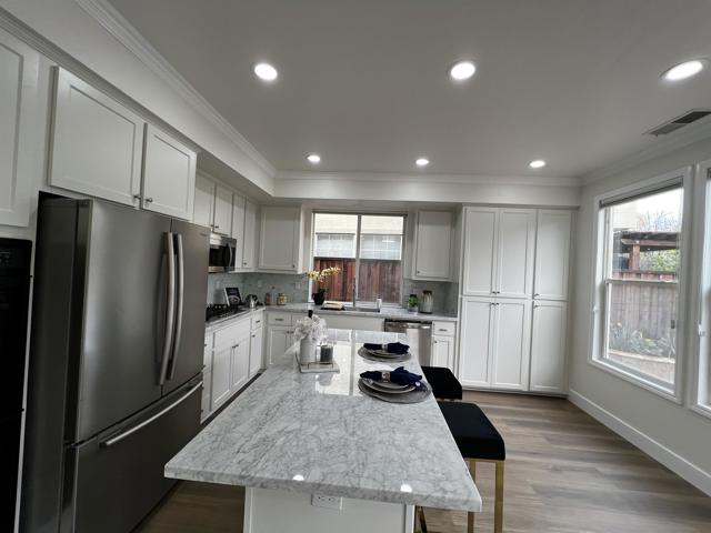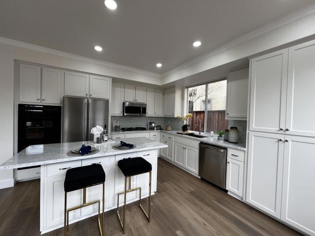 Nestled on a quiet court in the desirable Gale Ranch community, this fully renovated home offers beautiful mountain views from the primary suite and a bright, open floor plan made for everyday comfort and entertaining. A full bedroom and bathroom on the main level create the perfect setup for guests, multigenerational living, or a home office, while the spacious upstairs loft provides flexible living space and can easily become a fifth bedroom. Recent upgrades include new luxury vinyl flooring, fresh interior paint throughout including doors and cabinetry, recessed lighting, soaring ceilings in the formal living room, and a redesigned kitchen with a new island, countertops, and cabinetry. Bathrooms have been stylishly updated with new shower enclosures, modern fixtures, and a soaking tub in the primary suite. Ideally located near top-rated San Ramon schools, Safeway, popular restaurants, Blackhawk Plaza, Downtown Danville, and City Center at Bishop Ranch/The LOT with shopping, dining, and luxury cinema. Quick access to I-680 and nearby hiking trails add to the appeal, along with a low property tax base of approximately 1.26%.