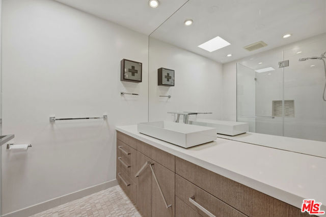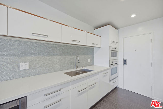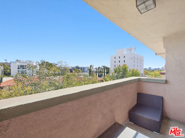 Welcome to modern living at The Bristol, ideally located in the heart of West Hollywood just north of Santa Monica Boulevard and east of La Cienega. This top-floor residence offers approximately 1,379 square feet of thoughtfully designed living space with sweeping east-facing views and abundant natural light throughout. The spacious, bright, and airy living room opens to a private balcony, perfect for morning coffee, evening relaxation, or stargazing. An open-concept layout seamlessly connects the living room, dining area, and kitchen creating an inviting space for both everyday living and entertaining. The updated kitchen features stainless steel appliances, quartz countertops, and ample cabinetry, offering both style and functionality. A dedicated dining area is adjacent to the kitchen, enhanced by large windows that fill the space with natural light. Tile flooring in living room, dining area, kitchen and bathrooms, coupled with hardwood flooring in both bedrooms and hallway adds to this unit's clean, modern aesthetic. The spacious primary suite provides an expansive eastern view, a roomy walk-in closet, and an updated en-suite bath with a glass-enclosed shower. Both bathrooms have been tastefully updated with contemporary finishes, including skylights, and a double vanity + glass-enclosed shower / soaking tub in the second bath. The second bedroom is versatile and ideal as a guest room, home office, or nursery, and also faces east with a view. Dining area and bedroom windows have plantation shutters. An additional highlight offers the convenience of an HOA-approved washer / dryer combo in the unit that is located in a laundry room with additional storage. There are two assigned side-by-side parking spaces in the gated garage along with a private storage cabinet. Residents of The Bristol enjoy access to a pool and expansive outdoor common area with tables and seating, perfect for relaxing or entertaining. Monthly HOA dues of $699. includes water, property maintenance and structural earthquake insurance. Ideally situated near some of West Hollywood's most popular destinations, The Bristol is just moments from Sunset Boulevard, Barry's and Equinox gyms, Gelson's, Trader Joe's, Landmark Theatres, Marix Cafe, La Boheme, CVS, Wells Fargo, Bank of America, and soon-to-open Laurel Supply and Erewhon markets, placing the best of city living right at your doorstep.
