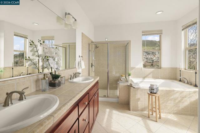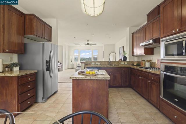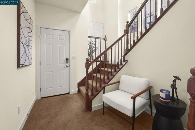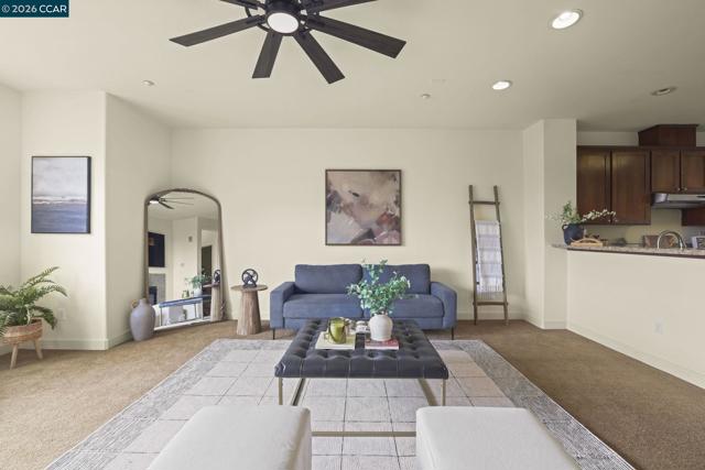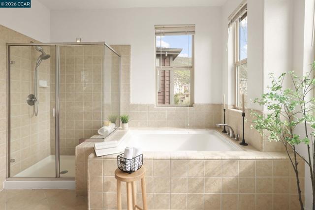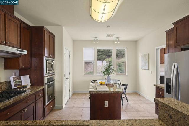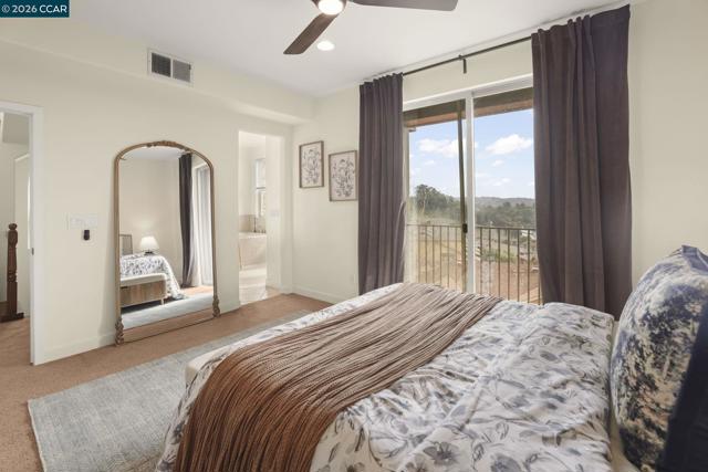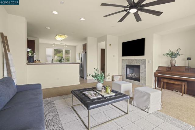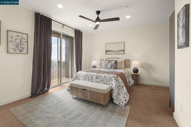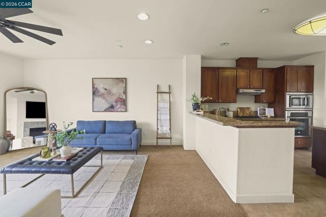 A sun-filled, south-facing residence in Monte Vista Villas with panoramic Bay views and a peaceful, private setting. This elegant 3-bedroom, 2.5-bath townhome spans 1,842 sq ft, featuring plush carpeting throughout, a statement fireplace, and an expansive open layout designed for effortless entertaining.The chef's kitchen is appointed with granite countertops, a generous center island, stainless steel appliances, and a walk-in pantry. The oversized primary suite is a private retreat unto itself- with its own walk in closet and spa like ensuite bathroom. Greet the morning with breathtaking Bay views, step onto your personal balcony, and indulge in a spa-caliber bath featuring a deep soaking tub, frameless glass shower, and dual vanity. Two additional bedrooms offer ample closet space and serene comfort. Located in Monte Vista Villas which delivers an enviable lifestyle: a private clubhouse, state-of-the-art fitness center, manicured parks, playgrounds, amphitheater, and curated community events. Ideally located being moments away from 580/13, scenic trails, and the boutiques and cafés of Montclair Village.