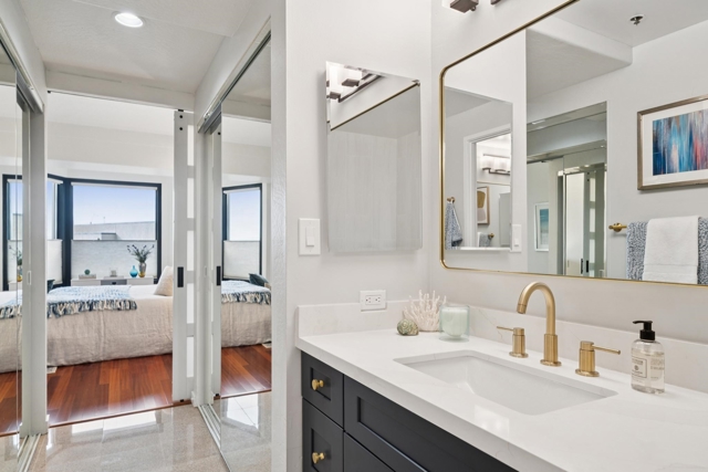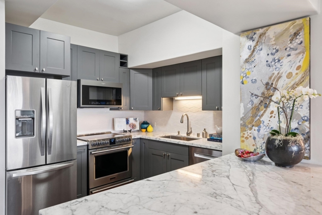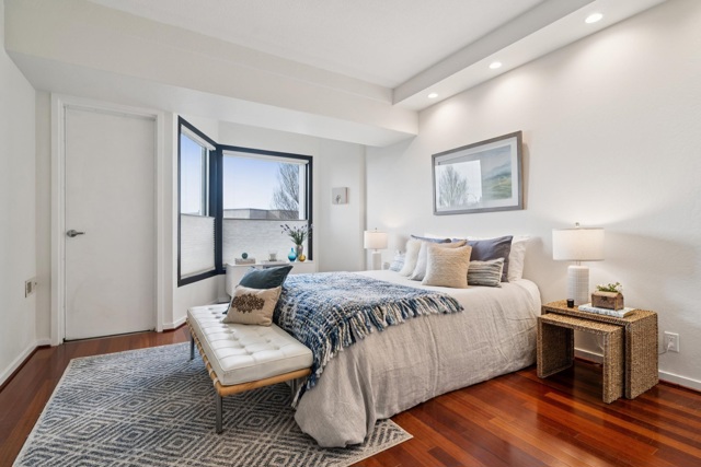 This is the GGBridge-Bayview condo you've been waiting for! Classy remodel of the large 1-bed/1-bath model in Emeryville's premiere luxury building, Pacific Park Plaza. Open-space kitchen has marble counters, new cabinets, custom tile backsplash, a pantry and quality stainless appliances offering air-fry and convection in both the range and microwave. Hardwood floors throughout, with granite floors in the renovated 2-room bath suite. Large west-facing dual-pane windows bring in SF city lights and Golden Gate Bridge views and tons of natural light, with designer lighting and recessed fixtures updating your interior. Relax into a pampered lifestyle: private community pool and spa, tennis courts, gym and sauna, gated parking and 24/7 onsite security staff. Across the street from Christie Park & Playground and Emeryville Public Market, around the corner from the Bay Trail and Emeryville Marina, your new home is walking distance to Trader Joe's/Powell St. Plaza and Bay Street shopping/dining district. Free shuttle to BART, neighboring cities, and the many attractions that make Emeryville a model for smart, clean, forward-thinking urban redevelopment. (A vibrant calendar of building-sponsored activities will acquaint you with neighbors and local attractions.) Your good life starts here