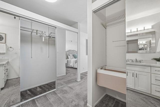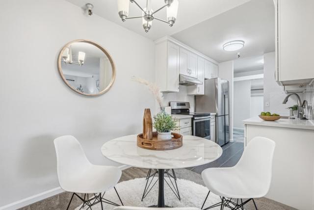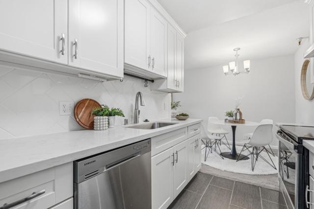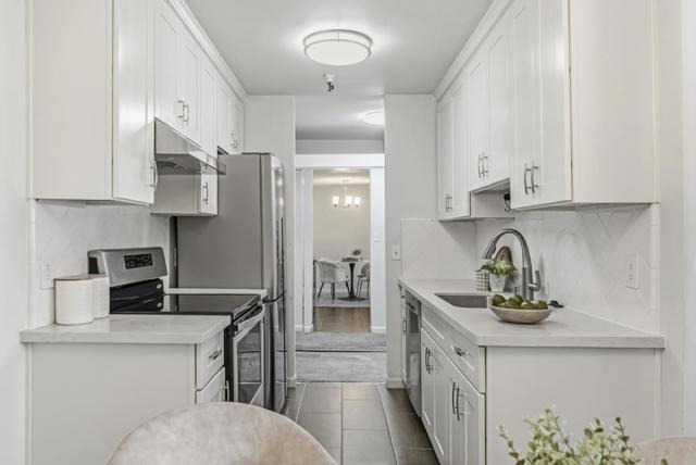 Beautifully remodeled and stylish condo in one of Mountain Views most convenient and sought-after locations. Sleek and contemporary, this light-filled home features an open floor plan with a spacious living room that seamlessly extends to a private balcony, creating a bright and inviting indoor-outdoor living experience with gorgeous sunset views. The stunning updated kitchen offers stone countertops, a full-height offset subway tile backsplash, large-format tile flooring, and stainless-steel appliances. Spacious, sun-drenched bedrooms provide oversized closets, and both bathrooms have been tastefully renovated with modern large-format tiles and elegant stone counters. New light fixtures an double-pane windows ensure excellent sound and temperature insulation, while in-unit laundry and ample storage add everyday convenience. The secure community includes underground parking, a sparkling pool, inviting clubhouse, and is ideally located near San Antonio Village, Whole Foods, shops, restaurants, public transportation, major commute routes, and award-winning Los Altos schools.