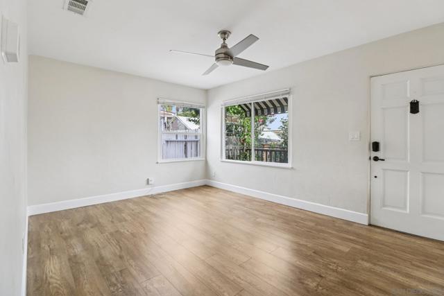 Timeless Spanish charm in the heart of City Heights. Perched on a corner lot, this character-rich home blends original architectural details, including vintage hardware and classic accents with thoughtful modern updates. The kitchen features stainless steel appliances and quartz countertops, offering both style and everyday functionality. The detached garage and spacious lot provide added versatility and room to grow, whether you envision creative workspace, additional storage, or future expansion. A separate laundry room adds practical convenience. Enjoy warm evenings on the wood patio deck overlooking the front yard, all just moments from neighborhood dining, coffee shops, parks, and easy freeway access for a quick commute to downtown, beaches, and beyond. A distinctive home that delivers character, flexibility, and urban accessibility at an exceptional value.