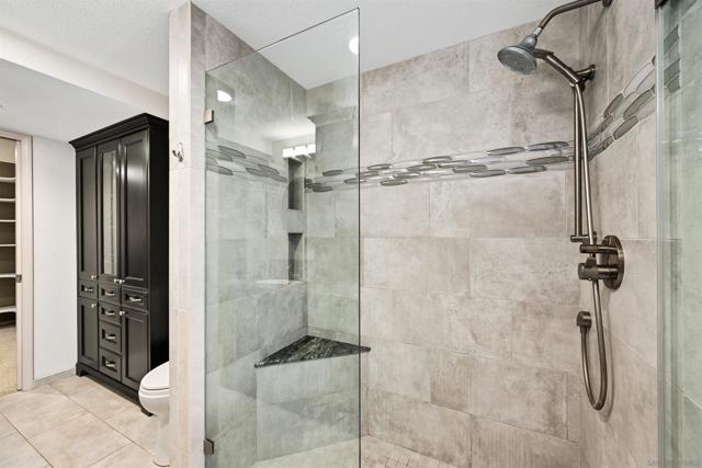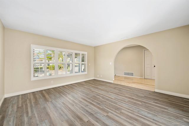 Set on a rare .39-acre golf-course lot in San Diego, this custom home offers sweeping fairway views from every room. Ideally located within walking distance to award-winning schools, under 10 minutes to town center, trolley, and Costco, and just 5 minutes to the freeway. Designed for seamless indoor-outdoor living, highlights include sliding glass doors in every bedroom, a dramatic spiral staircase with skylight, a spacious second-story deck, veranda, and custom stone patios. Interior features include travertine tile, updated vinyl plank flooring (2021), remodeled kitchen and baths, and hard-wired Ethernet throughout. Energy-efficient upgrades include owned solar (2020), new battery and inverter (2025), and a 2023 heat pump and AC system. Approved, paid-for plans allow conversion to a studio ADU with its own address (9221). Mature landscaping, fruit trees, stamped concrete, gazebo, and multiple covered outdoor spaces complete this rare opportunity blending views, convenience, and future potential.