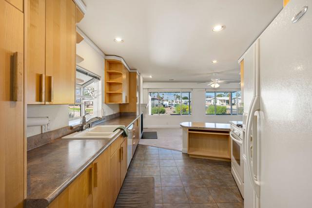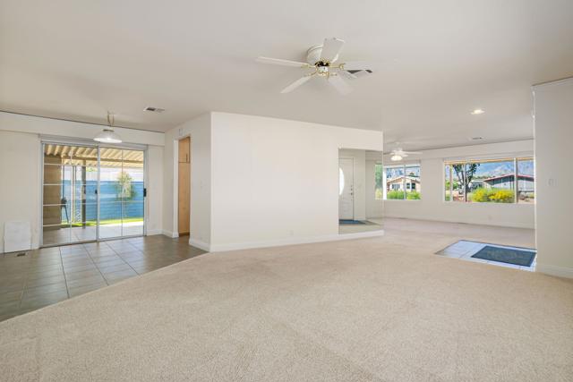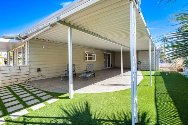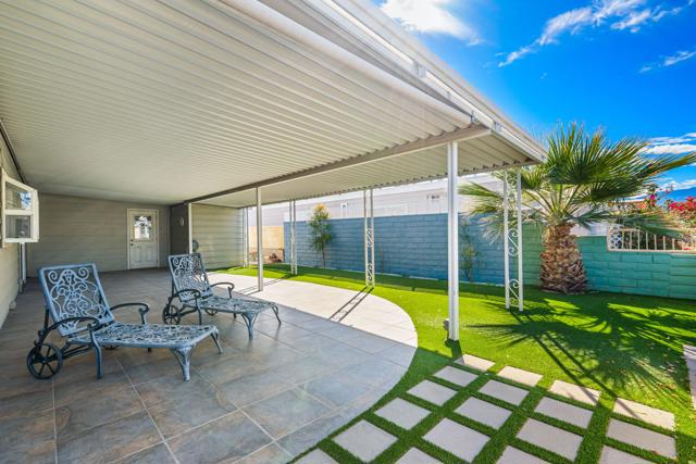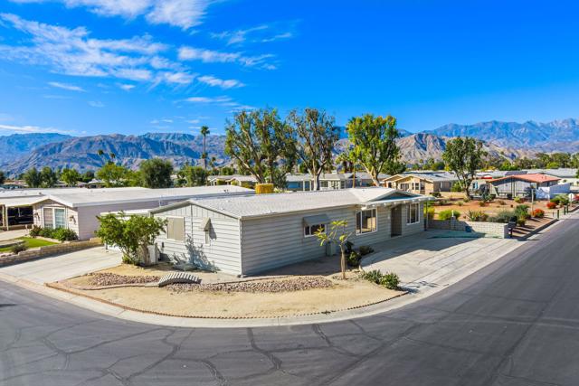 Experience the best of desert living in this desirable Palm Desert Greens Country Club home, showcasing beautiful mountain views and outstanding private outdoor space. Ideally positioned on a corner lot along the greenbelt, this spacious 2-bedroom, 2-bathroom residence offers a peaceful setting with added openness and scenic surroundings. A circular front driveway provides easy access, while an additional private driveway enhances convenience. The large, enclosed carport offers abundant covered parking and extra storage space. Inside, the bright and inviting living room features a cozy fireplace, perfect for relaxing on cool desert evenings. The drywalled interior and dual-pane windows add both comfort and energy efficiency throughout. The kitchen is thoughtfully updated with attractive finishes, generous cabinetry, and ample workspace. An interior laundry area adds everyday practicality. One of the home's most impressive features is the expansive private enclosed patio, an ideal space for entertaining guests, unwinding in peace, or simply taking in the stunning mountain views. Located within Palm Desert Greens Country Club on the greenbelt, residents enjoy access to resort-style amenities including golf, a clubhouse, pools, fitness center, and a vibrant social scene all just minutes from shopping, dining, and everything Palm Desert has to offer. Move-in ready and perfectly situated, this home offers comfort, scenery, and an exceptional lifestyle opportunity in one of the desert's premier 55+ communities.