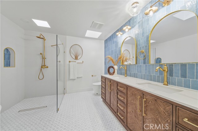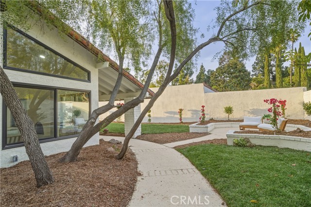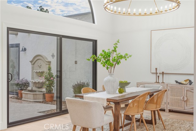 Freshly renovated is this sophisticated single level gem that feels as if you’re stepping into generational wealth. Rarely on the market the homes this community exude timeless elegance and a setting harking back to early San Juan Capistrano. From the stately cul-de-sac there is a spacious two car driveway that leads to two car garage and a gate which leads into a lush and inviting private entry courtyard. This flows through to the pool and spa patio backyard but first the home is entered through striking custom double doors and once inside you are immediately drawn into the light, bright and spacious formal living spaces that truly make a statement. With skylights throughout the home the feeling of space and elegance is amplified. The formal living room has great light from large windows that look out onto the entry courtyard, vaulted ceilings and a captivating floor to ceiling fireplace. Directly adjacent is the formal dining room and anchoring both is a fully renovated chef’s kitchen with quartz counters, all new cabinets, fixtures and lighting and professional grade stainless steel appliances. A true magazine worthy kitchen that must be seen in person. Beyond the formal spaces is an exceptionally unique multipurpose space that truly makes indoor/outdoor pool side living even more enviable. Entering there is a seating area, perfect for morning coffee or a game night, which flows into a highly functional entertainment space that has storage and counters and plenty of room for a pool table, a gym or craft space all bathed in poolside natural light. The possibilities are endless. Adjacent is another sitting area and a small office alcove with side patio access. The primary suite is spacious, has direct pool deck access and showcases a stunning spa-like ensuite that features a soaking tub, walk in shower and a dual sink quartz vanity. Two additional guest bedrooms, a fully renovated guest bath and an inside laundry room complete this truly special residence. Outside the wrap around outdoor spaces that encompass the entry with its spacious conversation area perfect for a firepit, side yard with a grassy lawn and mature planting beds and back pool and spa patio are certainly black-tie event ready entertaining spaces and the pool and spa feature a dark pebble finish and custom Spanish themed tile inlay. Plating beds and an all-new privacy fence encapsulate the yard. Timeless sophistication exudes from this must see residence. Welcome home.