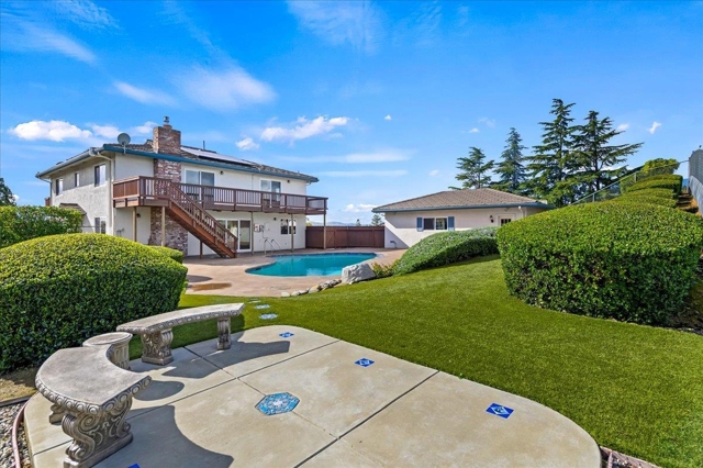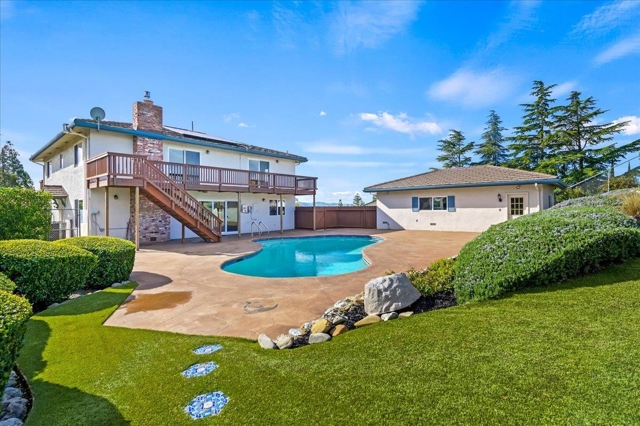 Welcome to this beautiful custom home where country living and city convenience come together. Situated on an over ¼-acre lot, offering a country feel while staying close to all the Livermore amenities you love. Located just minutes from downtown Livermore, this property backs to open space and showcases expansive views of the Livermore hills. Upon entry, you’re welcomed by a charming library with built-in bookshelves on one side and a spacious living room on the other. A formal dining room with built-ins is ideal for entertaining. The kitchen features stone counters, an electric range, and a dishwasher. The kitchen opens to a large family room with a gas fireplace, built-in cabinetry and bookshelves with a sliding door leading to the backyard. Upstairs offers four generously sized bedrooms, including the primary suite with two closets and a patio. The backyard is a true retreat with a swimming pool and stunning hill views. An oversized garage with built-in cabinets provides ample storage. A rare opportunity to enjoy space, views, and convenience all in one special Livermore home.