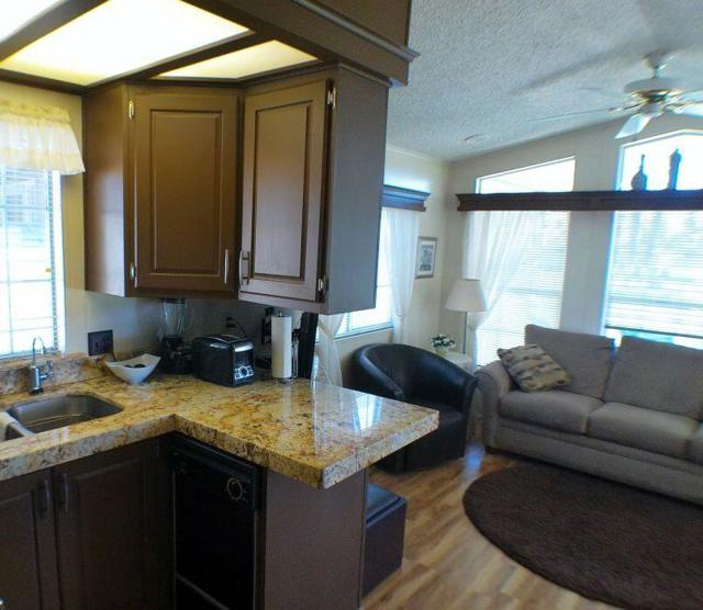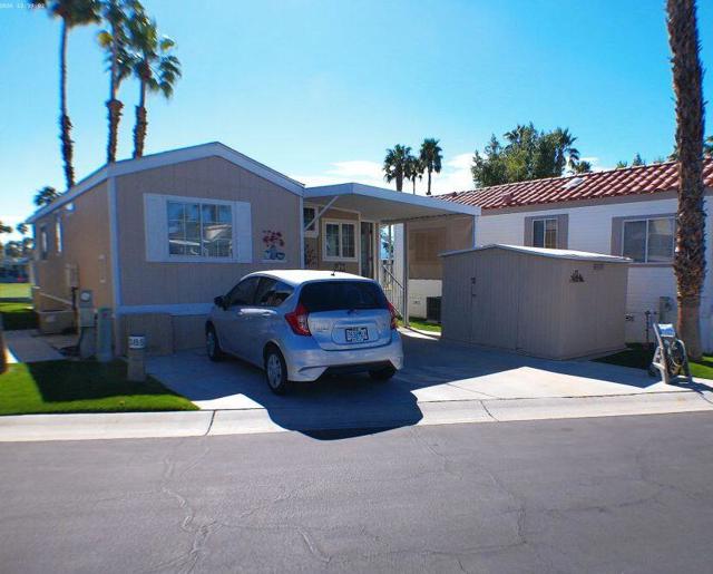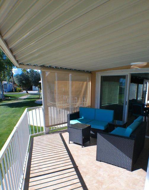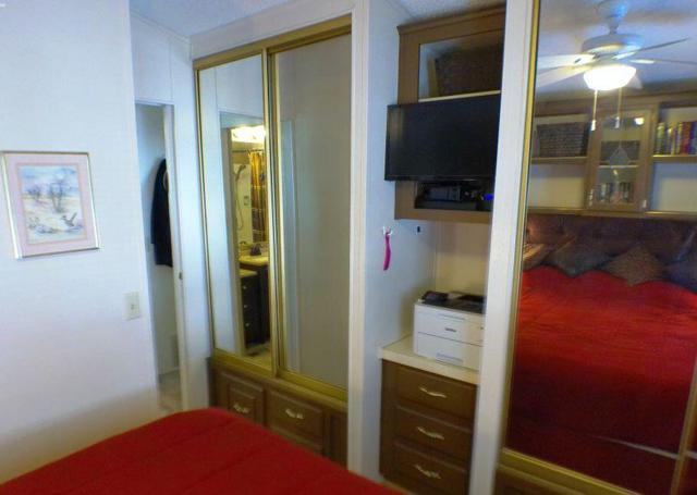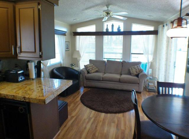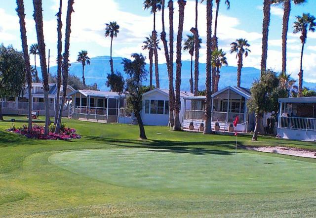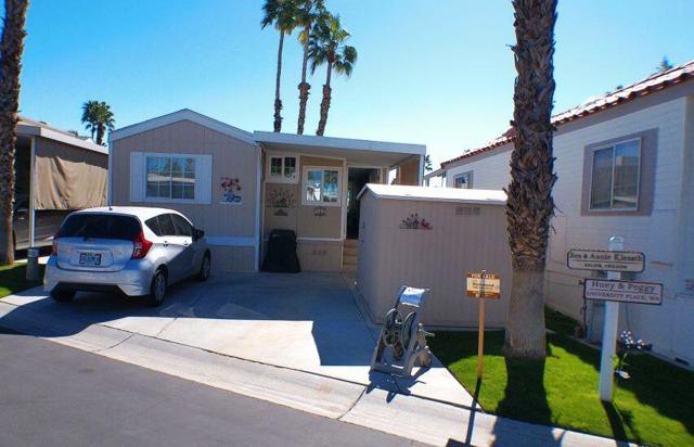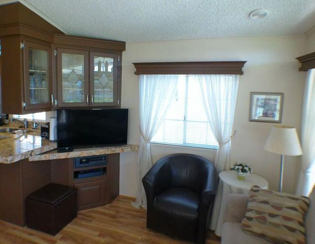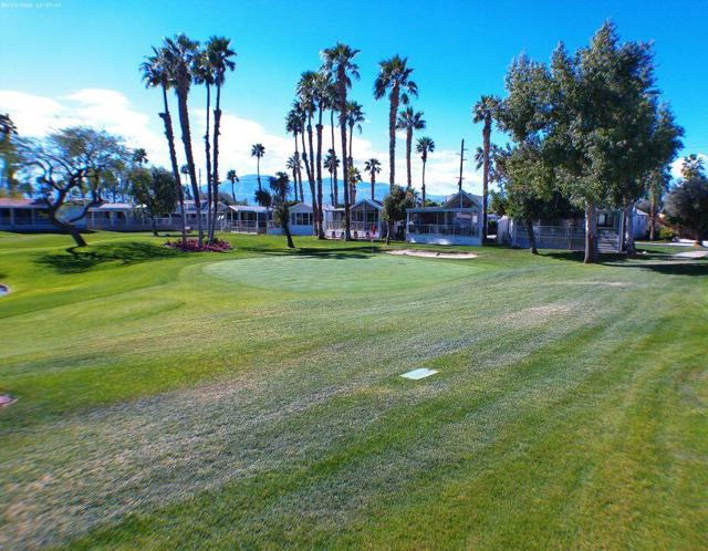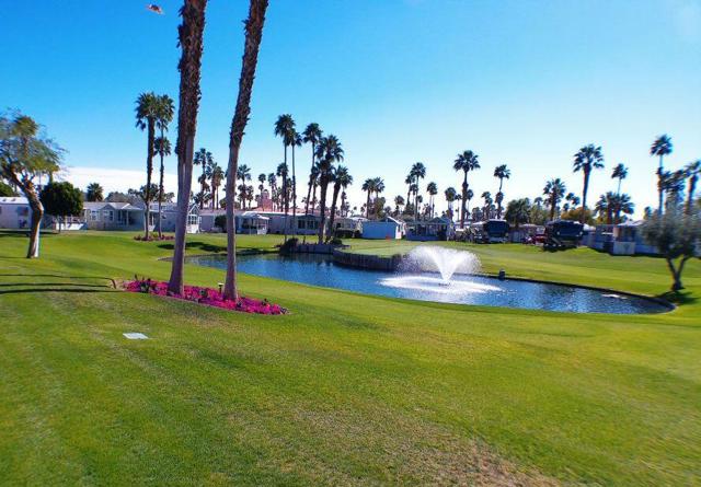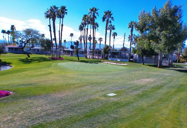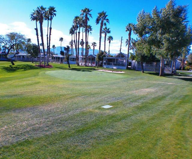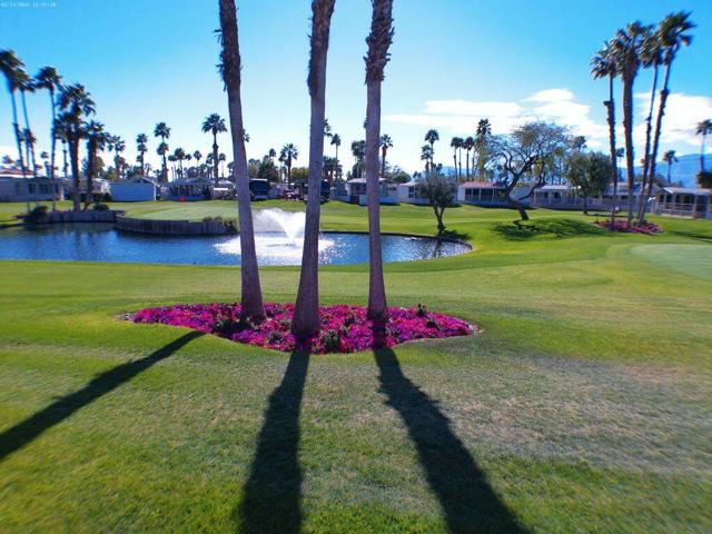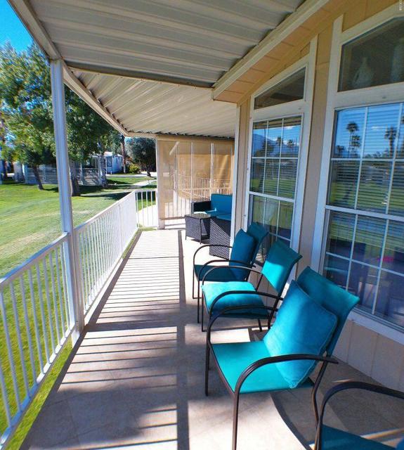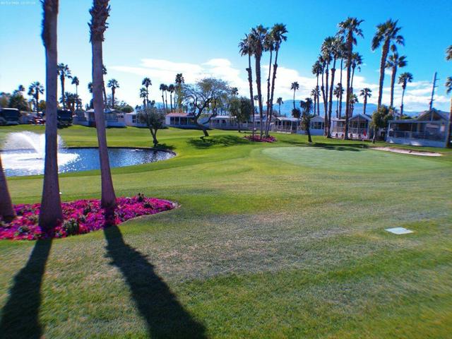 Fabulous, updated Fleetwood Park Model with a wraparound deck with views of the San Jacinto Mtns, Hole #5 & #6 with a pond in front of you. Granite Counters, Laminate Flooring, a CA Room for Dining & Dishwasher. The Bathroom has an updated Shower and is a Jack & Jill style. Lots of cupboards for storage, mirrored closet doors in Bedroom, Queen Bed. The kitchen is well appointed with a Stainless Fridge and Gas Range. Great Location. Don't miss this One.