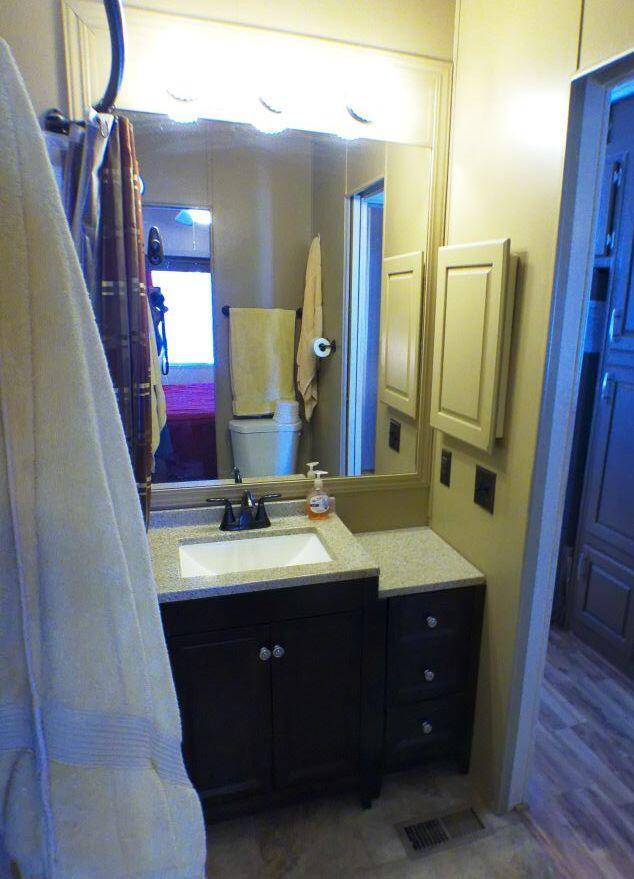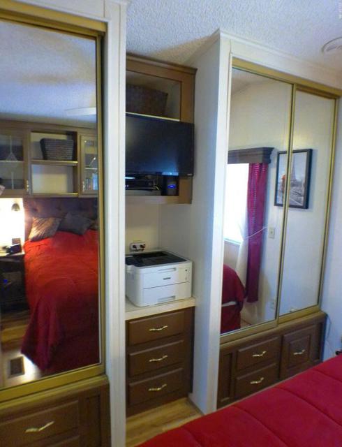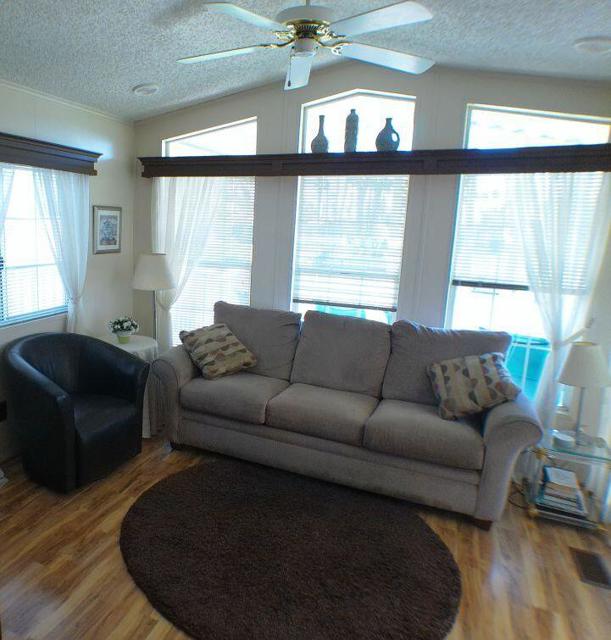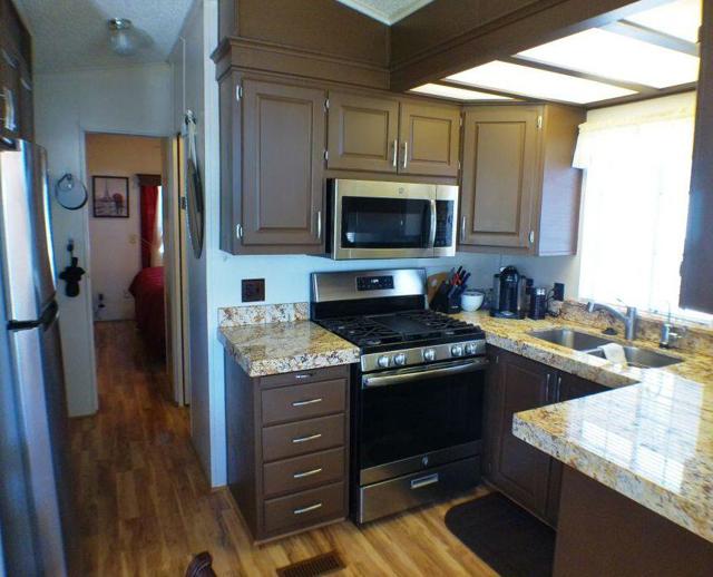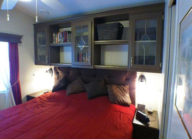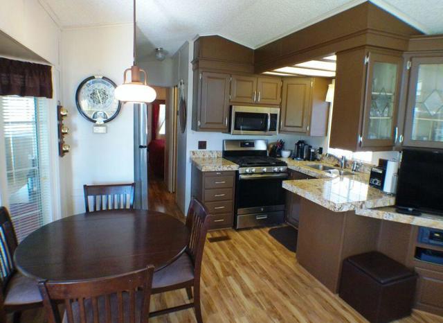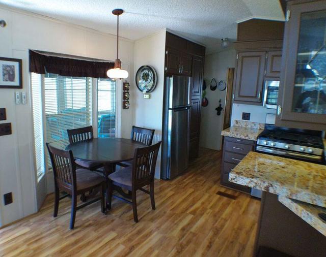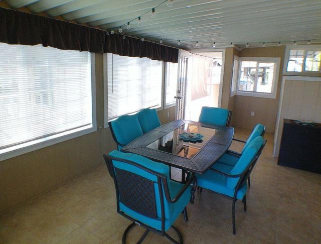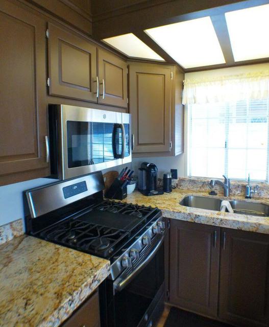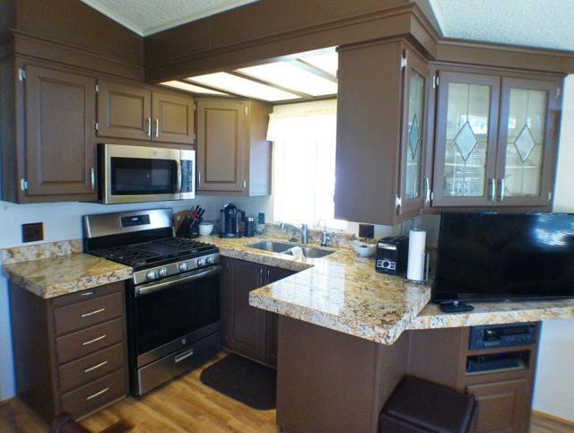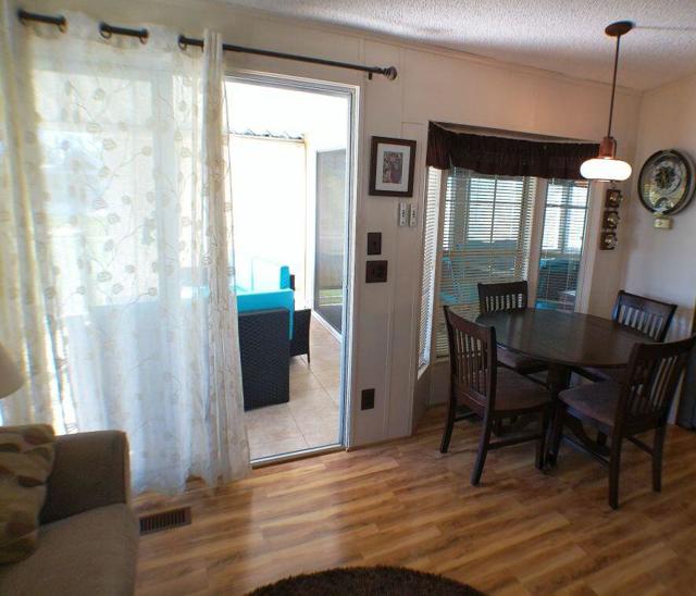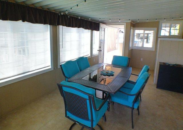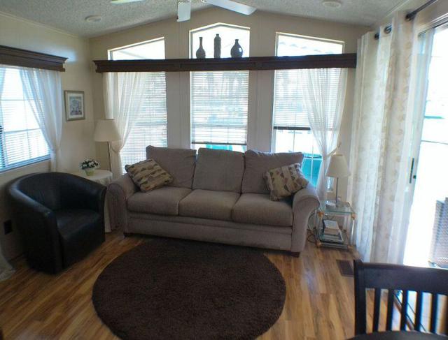 Fabulous, updated Fleetwood Park Model with a wraparound deck with views of the San Jacinto Mtns, Hole #5 & #6 with a pond in front of you. Granite Counters, Laminate Flooring, a CA Room for Dining & Dishwasher. The Bathroom has an updated Shower and is a Jack & Jill style. Lots of cupboards for storage, mirrored closet doors in Bedroom, Queen Bed. The kitchen is well appointed with a Stainless Fridge and Gas Range. Great Location. Don't miss this One.