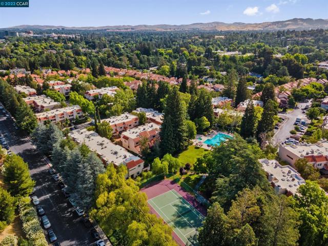 Immaculate, remodeled townhouse style condo. Excellent location with forest and greenbelt views, enter into a charming garden with lots of beautiful mature trees and flowers. Sunny great room with laminate flooring, recessed lighting, marble slab gas fireplace, and plenty of room for entertaining or relaxing. Living room flows into dining room, kitchen and French door, huge picture window looks out to back garden, quartz countertops, stainless steel appliances, open compartment sink, beautiful white shaker cabinet package all throughout home. Three beautifully remodeled bathrooms, two master bedroom suites with vaulted ceilings and views, mirrored wardrobe doors, full laundry smart home temperature controls, central heating and A/C. Storage,new concrete and fencing in backyard.parking space is right outside the back gate, just steps into your home and kitchen. Be in the best shape of your life, swim, tennis, hot tub, walk, jog, or bike to The Iron Horse trail, parks, coffee houses, great restaurants, approximately 20 minute walk to downtown or BART, minutes to Hwy 680 and 24. Charming community with lots of room to roam and lots of open area green spaces, terrific neighborhood. Get ready for the life you deserve in the best location, luxury, and amazing lifestyle.