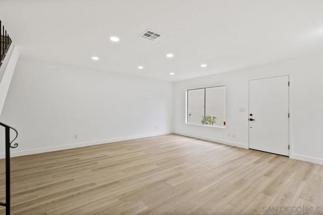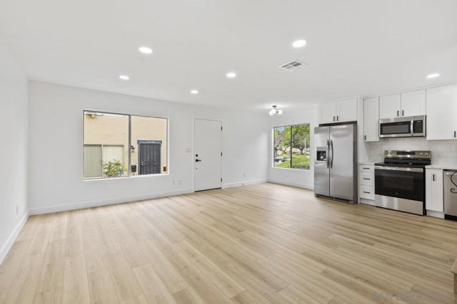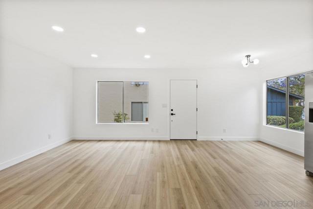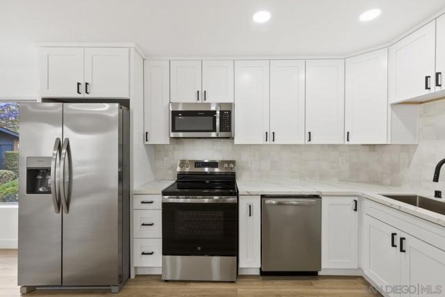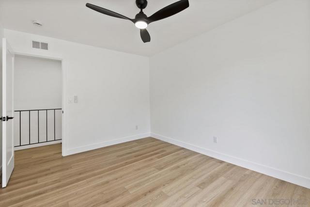 Highly upgraded 2-story, 2-bedroom, 1-bath condo located in the desirable Peñasquitos Villas community, tucked at the end of a quiet cul-de-sac in Rancho Peñasquitos. This thoughtfully remodeled home offers a fresh, modern feel with luxury vinyl plank flooring throughout both levels, wide baseboards, and all-new interior paint-including closets-for a crisp, cohesive look. Refurbished handrail complements the updated staircase, and new \recessed lighting in the dining and living areas enhances the bright and open ambiance. The fully remodeled kitchen is both stylish and functional, featuring all-new cabinets, quartz countertops, a new sink and faucet, new tile backsplash, brand-new appliances, and updated lighting that highlights the quality of the finishes. The adjacent dining area blends seamlessly with the living space, making it ideal for everyday living and entertaining.Upstairs, you'll find two comfortable bedrooms with ceiling fans and mirrored closet doors. One bedroom overlooks a blooming Jacaranda tree, offering a peaceful touch of greenery just outside the window. The beautifully renovated bathroom includes a new vanity with a quartz countertop, new sink and faucet, new toilet, new tub and fixtures, and a custom tile tub/shower enclosure with a clean, modern finish. Additional features include all-new interior doors, a hallway linen cabinet, an extra upstairs storage closet, and a shared one-car garage. The location is both peaceful and convenient with no road noise. This move-in-ready home combines comfort, quality upgrades, and a great Rancho Peñasquitos locatio Highly upgraded 2-story, 2-bedroom, 1-bath condo located in the desirable Peñasquitos Villas community, tucked at the end of a quiet cul-de-sac in Rancho Peñasquitos. This thoughtfully remodeled home offers a fresh, modern feel with luxury vinyl plank flooring throughout both levels, wide baseboards, and all-new interior paint-including closets-for a crisp, cohesive look. Refurbished handrail complements the updated staircase, and new \recessed lighting in the dining and living areas enhances the bright and open ambiance. The fully remodeled kitchen is both stylish and functional, featuring all-new cabinets, quartz countertops, a new sink and faucet, new tile backsplash, brand-new appliances, and updated lighting that highlights the quality of the finishes. The adjacent dining area blends seamlessly with the living space, making it ideal for everyday living and entertaining.Upstairs, you'll find two comfortable bedrooms with ceiling fans and mirrored closet doors. One bedroom overlooks a blooming Jacaranda tree, offering a peaceful touch of greenery just outside the window. The beautifully renovated bathroom includes a new vanity with a quartz countertop, new sink and faucet, new toilet, new tub and fixtures, and a custom tile tub/shower enclosure with a clean, modern finish. Additional features include all-new interior doors, a hallway linen cabinet, an extra upstairs storage closet, and a shared one-car garage. The location is both peaceful and convenient with no road noise. This move-in-ready home combines comfort, quality upgrades, and a great Rancho Peñasquitos location.