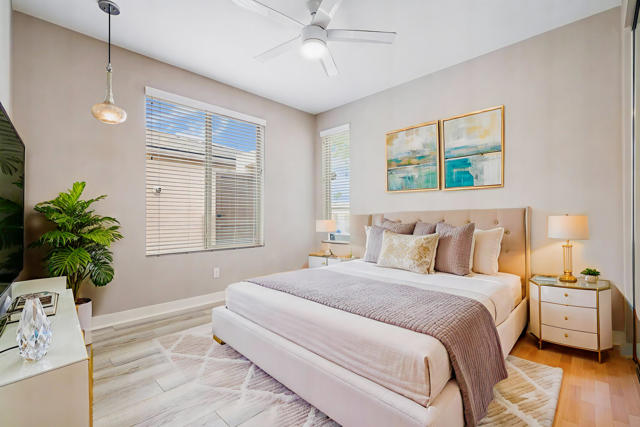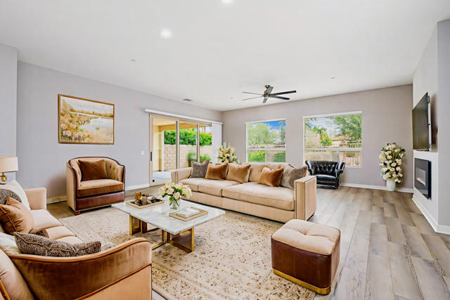 Welcome to The Gallery at Indian Springs, where lifestyle isn't just a bonus -- it's the whole reason you move here.Tucked inside an intimate enclave of just 25 homes, this beautifully upgraded 3-bedroom, 3-bath residence puts you at the center of everything that makes desert living so addictive. Tee it up at nearby world-class golf courses, grab dinner at one of the valley's top tables, catch a show at Acrisure Arena, or squeeze in a morning pickleball match before brunch. This location delivers the full Coachella Valley experience -- without the commute.Inside, the light-filled open floor plan was designed for effortless indoor-outdoor living. The spacious great room flows seamlessly through expansive sliding glass doors to a private patio overlooking the greenbelt and mountains. Morning coffee with a view? Yes. Sunset wine with friends? Even better.The chef's kitchen anchors the home with stainless steel appliances, a generous center island, and abundant cabinetry -- perfect for entertaining after a round of golf or a night at the arena. The primary suite is a true retreat with direct patio access, a walk-in closet, and a spa-inspired bath featuring dual vanities and a walk-in shower. Two additional guest bedrooms offer privacy and flexibility -- including one with its own en suite bath, ideal for visitors.Practical perks elevate daily living: a well-appointed laundry room with sink and storage, a spacious two-car garage, a dedicated golf cart garage, a Tesla charger, and a smart garage door opener for modern convenience.Residents of The Gallery enjoy lush greenbelts, a dedicated dog park, and a tranquil, well-maintained setting. Even better, homeowners receive a resident discount for membership at Indian Springs Golf Club, with a private gate and tunnel providing easy, direct access to the course -- because your tee time should never involve traffic.With premier golf, tennis, pickleball, dining, shopping, hiking, and entertainment just minutes away, this isn't just a home -- it's your gateway to the desert lifestyle done right.