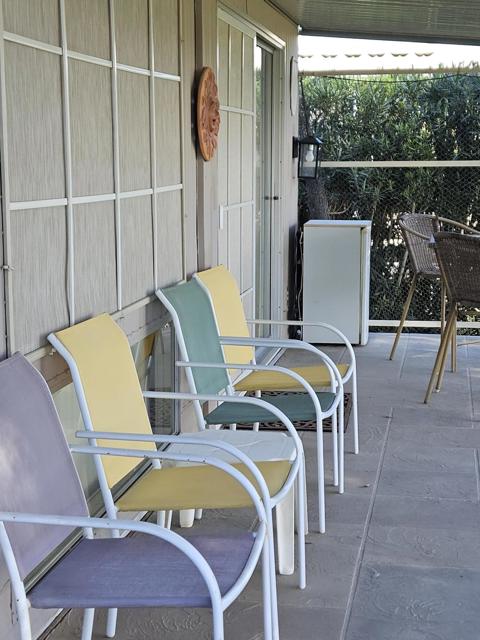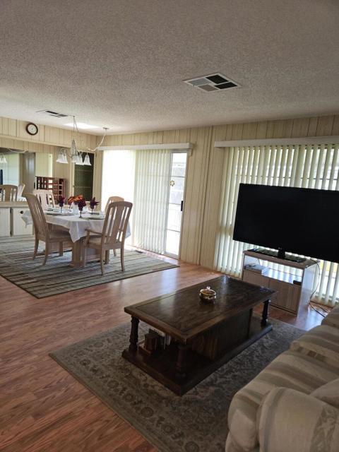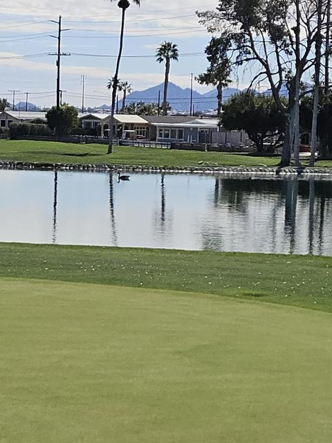 This home is Light and Bright and move-in ready it comes turnkey furnished including golf-cart. Enjoy your favorite beverage on the large covered patio overlooking the beautiful views of the golf course, mountains and pond. The home is perfect for entertaining family and friends . This popular floorplan offers the large open livingroom and the extra room to gather comfortably without feeling cramped. Additionally, it offers 2 bedroon, 2 bathroom, and indoor laundry. Outside has covered patio on 2 sides, grapefruit tree, mature shrubs and sprinklers system. Tri-Palms Estates is a spirited 55+ community that offers 2 golf courses, pools, spa, tennis, pickleball, shuffleboard, clubhouse, restaurant, bar,and many planned activities. Conveniently located near shopping, restaurants, casinos, theatre, and medical facilities. Welcome Home!