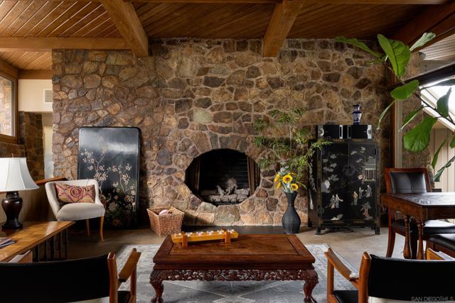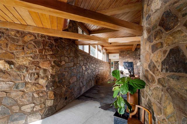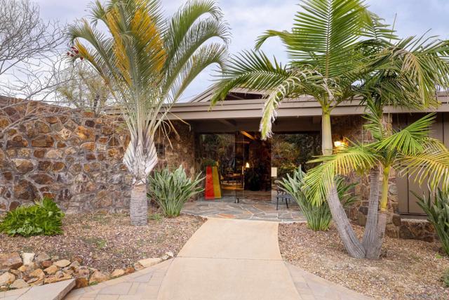 MID-CENTURY MODERN IN MT HELIX: The Jackson Residence by architect Lloyd Ruocco, immediately captures any visitor's attention with fantastic contrasts. While the concrete floors and rock walls follow the contours of its site, the home’s glass expanses and patio/pool area open up to the sky and views to the east county mountains. Historically designated, this private, expansive oasis engages all 1.5 acres. Multiple structures provide ample storage and even potential for a grand pool house. The property also hosts a significant number of permitted upgrades for the next owner to enjoy.