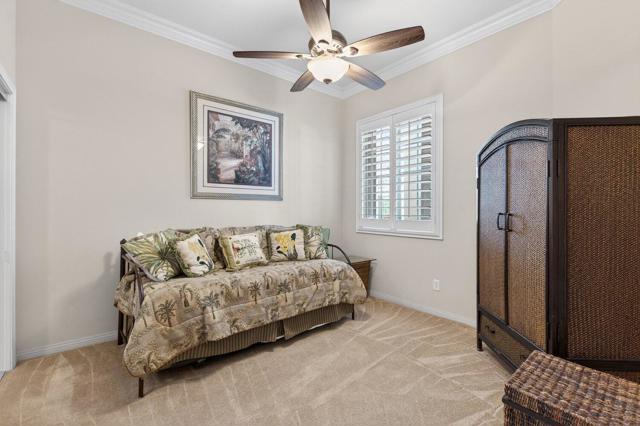 Welcome to this charming 1,764 sq. ft. Canterbury Model tucked inside the ever-popular Heritage Palms Country Club -- where every day feels a little like a vacation and comfort meets effortless desert style. From the moment you step inside, you're greeted by a bright, open-concept layout designed for both relaxed living and easy entertaining. The spacious great room is warm and inviting, centered around a striking rock-finished gas fireplace that sets the mood for cozy desert evenings with friends, family, or your favorite movie. The kitchen truly shines as the heart of the home, featuring granite countertops, generous prep space, abundant cabinetry, and extra storage to keep everything neatly organized. Whether you're hosting a dinner party or simply making breakfast, this space is ready for it all. Just off the kitchen, the sunny breakfast nook is the perfect place to start your day--coffee in hand, sunlight streaming in, and peaceful views all around. The oversized primary suite offers a relaxing private retreat, complete with a versatile bonus area that can easily become your home office, reading lounge, fitness zone, or cozy den. A comfortable guest bedroom and nearby bath ensure visitors feel right at home while maintaining privacy for everyone. Practical touches make daily life easy, including a spacious laundry room with direct access to the garage for added convenience. Step outside and the lifestyle truly begins. The front patio invites you to unwind with a good book or morning coffee, while the expansive covered back patio is pure desert serenity. Situated on the 7th Fairway and surrounded by lush landscaping and elegant pavers, this outdoor space captures sweeping mountain and golf course views--perfect for sunrise moments, sunset gatherings, or simply enjoying the peaceful rhythm of golfers passing by. Living here means enjoying all the incredible amenities the community is known for: an 18-hole championship golf course, tennis and pickleball courts, indoor and outdoor pools, a modern fitness center with group classes, a full-service restaurant and bar, and a lively clubhouse filled with social events and activities. Plus, you're just minutes from shopping, dining, scenic hiking trails, and the charm of Old Town La Quinta -- giving you the perfect mix of relaxation, recreation, and local flavor. This is more than a home... it's a lifestyle.Come see it, fall in love, and start living your best desert life. 🌴
