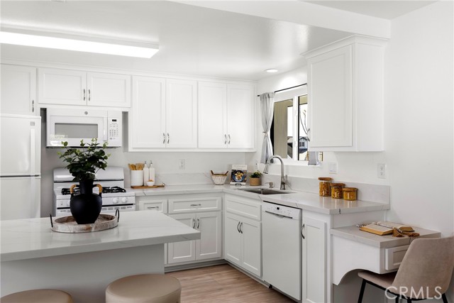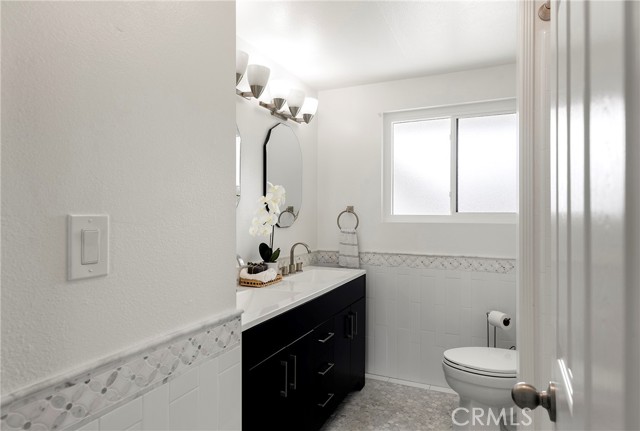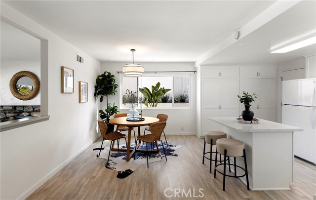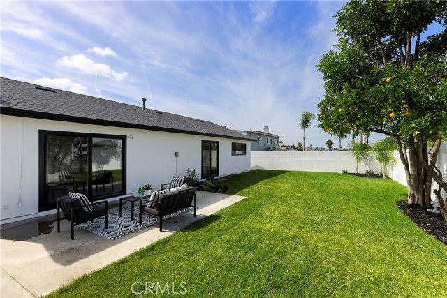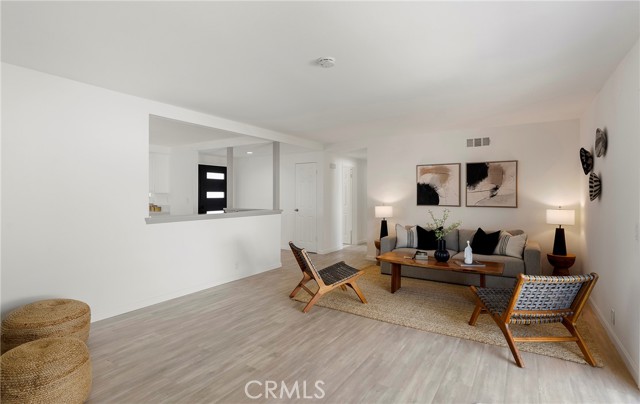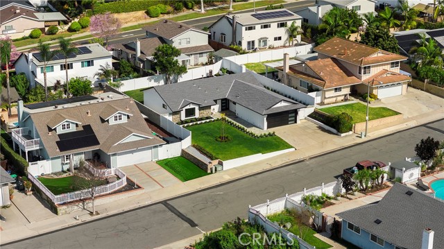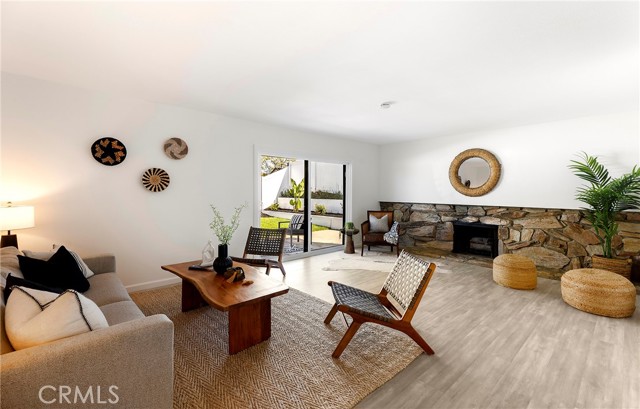 Situated in the heart of Laguna Hills with no Mello Roos or HOA, this thoughtfully updated single-level home offers an effortless lifestyle with a fresh mid-century feel and modern upgrades throughout. Upon arrival, you’ll notice that the home makes an immediate impression with freshly painted exterior, new light fixtures, updated front door and mailbox, and beautifully reimagined landscaping in the front, side, and backyard. A flagstone entry path leads to a private patio with space for dining or lounging—perfect for enjoying evening sunsets. Inside, natural light fills the open living spaces, highlighted by luxury grey wood-style laminate flooring and a spacious living room anchored by a wood-burning fireplace framed in a dramatic flagstone surround. A half-wall pass-through to the kitchen enhances the open-concept feel while preserving wall space for furnishings. Sliding doors extend the living area outdoors to a very private, expansive backyard featuring a lush lawn, fragrant tropical plantings including hibiscus, bird of paradise, star jasmine, boxwood, and lavender, along with fruit trees and an herb garden. New vinyl fencing, a block retaining wall, and a fully redesigned sprinkler system complete the outdoor transformation. The remodeled kitchen is both stylish and functional, featuring crisp white cabinetry with new doors and hardware, quartz countertops, generous pantry and linen storage, and a counter-height island with bar seating for two. The kitchen flows seamlessly into the dining area, where a new mid-century modern double-drum ceiling fixture adds a designer touch. All three bedrooms are comfortably sized and feature new glass sliding closet doors. The primary suite includes a bay window with window seat and an updated en-suite bath. Both bathrooms have been fully refreshed with marble tile, new vanities, resurfaced enclosures, and all-new fixtures. Additional upgrades include: new double-pane windows throughout, a new asphalt shingle roof, refreshed garage with automated garage door and an updated washer/dryer area with a utility sink, recent termite fumigation (2026), and a freshly painted interior. Just a short walk to award-winning schools, steps away from Knotty Pine Park, ideally located near the 5 freeway & Toll Roads, and just miles to Laguna Beach, Irvine Spectrum, shopping, and world-class restaurants, this home offers turn-key convenience and a fun lifestyle beyond!