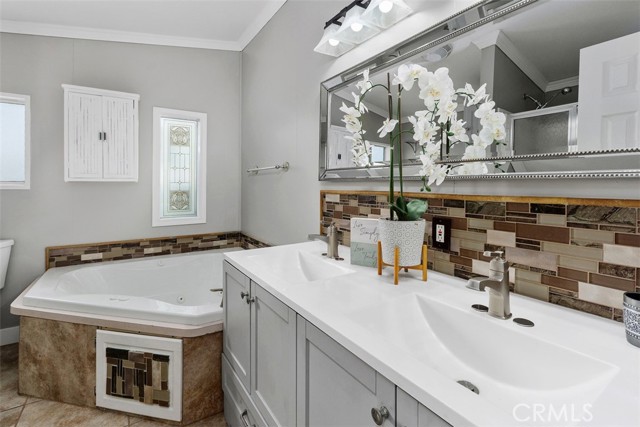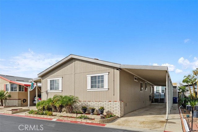 Beautiful 3-bedroom 2 bath mobile home located in the exclusive Rancho Ontario. This home's floorplan boasts the main suite in the back of the home along with the guest bedrooms on the opposite side of the home great for privacy when hosting. The main suite offers a tub, stand-up shower. The home offers an open concept from the dining room to the living room. The driveway can fit up to 3 small vehicles and also offers a big shed. The home offers a nice big open porch. Newly renovated amenities await you offering a heated pool and spa opened year-round, a hall to host any event, our clubhouse offers a billiards room, card table room, a fitness room as well as a gym and a lounge area to just sit and relax. The Park also offers an active area with two pickleball courts, bocce ball and we didn't forget about your fur babies, two dog parks. Don't miss out on the opportunity to call this beauty your home.