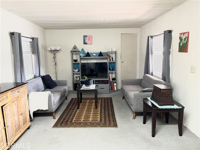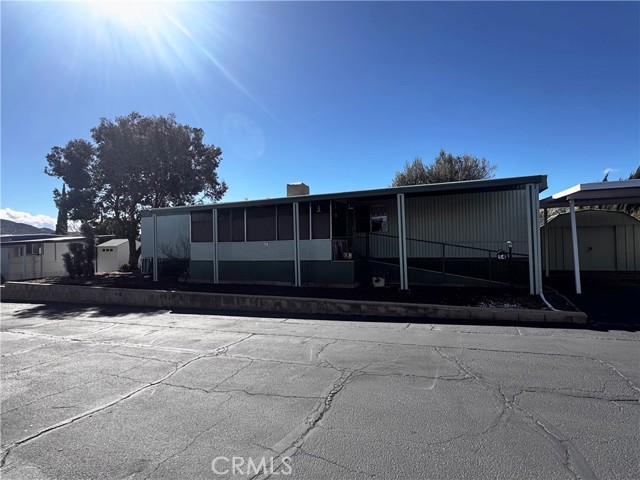 A beautifully maintained mobile home located in the desirable 55+ Fairway Mobile Estates Park in Yucca Valley, just a short 40-minute drive from Palm Springs. This inviting residence features a spacious open-plan layout with a large, screened in front porch perfect for enjoying the desert evenings. The home boasts durable linoleum flooring in the kitchen, newer appliances—including a gas range, washer, and dryer—and sleek wood-slat blinds throughout the home. The bathroom showcases elegant marble flooring and a matching tub surround, adding a touch of luxury. Comfort is ensured year-round with central heating and an efficient swamp-cooler for summer cooling. Residents enjoy community amenities such as a seasonal pool open during the summer months and an on-site laundromat. Conveniently within walking distance to Old Town Yucca Valley’s shops and restaurants as well as Hawk's Landing Golf Course, this pet-friendly home offers easy access to local dining, retail, and entertainment while providing a tranquil setting for comfortable living.