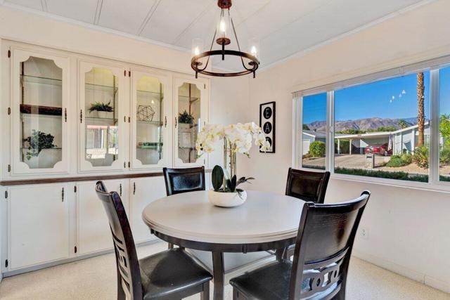 Discover exceptional value and comfort in this beautifully maintained 2-bedroom, 1.75-bath manufactured home in the highly desirable Portola Country Club, a gated 55+ golf community in the heart of Palm Desert -- where you own the land (no space rent!).Bright and inviting, the home offers open-concept living with newer dual-pane vinyl windows showcasing stunning mountain views, a newer water heater, a new ceiling and vinyl plank flooring in the air conditioned bonus room. Thoughtfully designed with two primary suites, each featuring its own ensuite bath, the layout provides both privacy and flexibility--ideal for hosting guests. In addition to central air and heating, an evaporative cooler enhances energy efficiency and year-round comfort.The bright and spacious kitchen includes a gas cooktop, stainless steel oven, stainless sink, and a built-in breakfast bar--perfect for your morning coffee or casual meals. The comfortable family room flows through French doors into a versatile bonus area, leading to a spacious hobby or craft room--tailored to your lifestyle. (NOTE: THE INTERIOR LIVING AREA IS CLOSER TO 1,690 SF WITH THE EXPANDED BONUS ROOM!!)The home opens onto a large backyard with stunning mountain views, easily accessed from the rebuilt carport. This private outdoor space offers abundant room for a spa, barbecue, or garden, along with space for your four-legged companion and endless possibilities for relaxing or entertaining. The home is on a permanent foundation with recorded 433A for easy financing and peace of mind.Residents of Portola Country Club enjoy unlimited golf on the private 18-hole, par-3 course, included in the low HOA fee, which also covers trash, cable, and internet. The community features three pools, pickleball and bocce courts, a NEWLY REMODELED clubhouse and fitness center, pub, dog park, and a full calendar of social activities.Located close to El Paseo's premier shopping and dining, the McCallum Theatre, and Civic Center Park, this home offers the perfect combination of comfort, community, and resort-style living in a friendly and active environment.