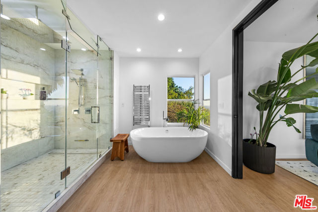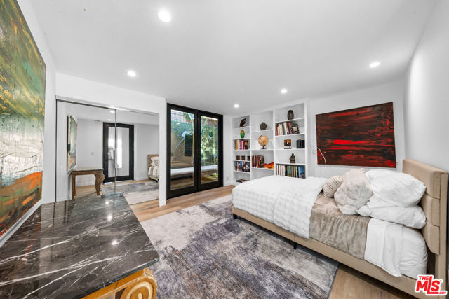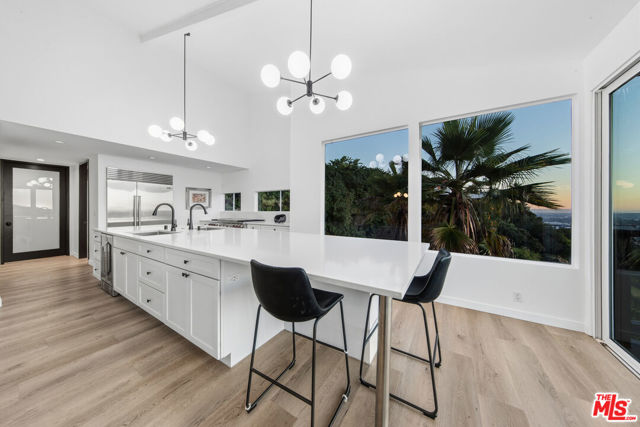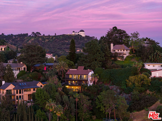 Perched in the prestigiousLos Feliz Oaks, this stunning contemporary masterpiece offers the perfect blend of architectural sophistication and tranquil retreat. Beamed double-height ceilings and floor-to-ceiling glass, the residence is bathed in natural light, framing breathtaking panoramic cityscape and sunset-colored vistas from nearly every room. The expansive open-concept floor plan seamlessly connects the living, den and dining areas, creating an effortless flow for high-end entertaining. Recently renovated, the home features a chef-inspired kitchen, designer bathrooms and sleek, new flooring throughout. The primary suite and three additional spacious bedrooms provide a versatile layout for modern living. Step outside to a private upscale lounge featuring an outdoor living room, soothing jacuzzi, fire feature and an inviting al fresco dining area perfect for sunset cocktails or quiet relaxation. Experience a fresh, modern lifestyle in one of LA's most coveted neighborhoods. Home has a 2-car garage with high ceilings and electric car charging.