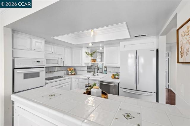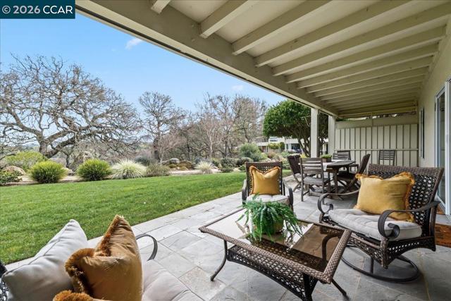 Tucked into a peaceful, private corner, this beautifully Exp.Kentfield 2-bed, 2-bath condo captures breathtaking views & effortless indoor-outdoor living. A spacious, landscaped backyard & inviting patio create the perfect setting to relax, entertain, & enjoy every season in style. Inside, you’ll find a thoughtfully updated white-tile kitchen with pull-out shelves & an expansive primary suite designed for comfort & retreat. A versatile office/den, ideal as a third bedroom or creative space, adds flexibility to suit your lifestyle. Hardwood floors grace the main living areas, while plush new carpeting enhances bedrooms. Dual-pane windows with custom shades, fresh interior paint, smooth ceilings, abundant natural light, & warm custom tones throughout create an inviting, move-in-ready ambiance. This home blends comfort, elegance, and timeless appeal, where the views will never cease to inspire. Experience the exceptional lifestyle of Rossmoor, the premier 55+ active adult community offering an array of amenities: 27-holes of golf, tennis & pickleball courts, lawn bowls, swimming pools, scenic hiking trails, a movie theatre, state-of-the-art fitness center, art studios. Welcome home!