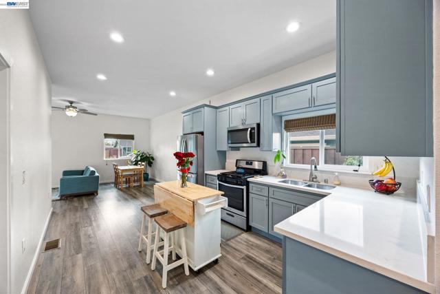 Beautifully renovated single-story home in the heart of Livermore! This thoughtfully updated residence blends modern style with classic charm, featuring a bright open floor plan and designer finishes throughout. Recently refreshed inside and out, updated vinyl plank flooring, plush carpeting, and a stunning kitchen with quartz countertops, brand-new stainless steel appliances, and generous cabinet space. Both bathrooms have been tastefully remodeled with contemporary vanities, sleek fixtures, and elegant bath and shower surrounds. Dual-pane windows enhance energy efficiency, while central HVAC ensures year-round comfort. The detached garage provides flexible use, currently set up with office and storage space and offering excellent ADU potential. An unfinished walk-in basement adds additional storage or expansion possibilities. The spacious backyard is a private retreat with mature yellow plum, quince, black walnut, bay leaf, and pink peppercorn trees—ideal for entertaining, gardening, or future growth. Conveniently located near shopping, dining, parks, and freeway access. Incredible Location, less than a mile to Downtown Livermore! Seller will co-operate with buyer rate buy down.