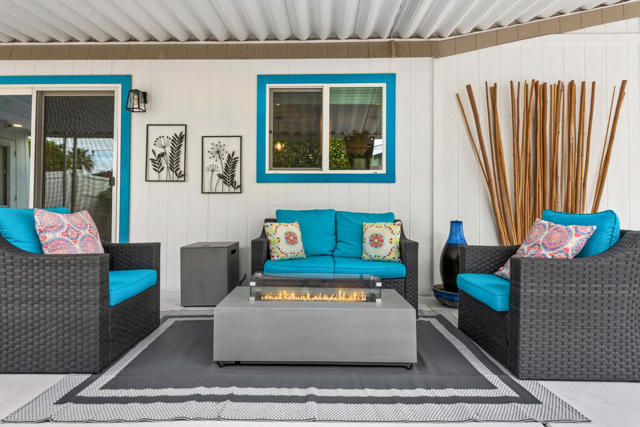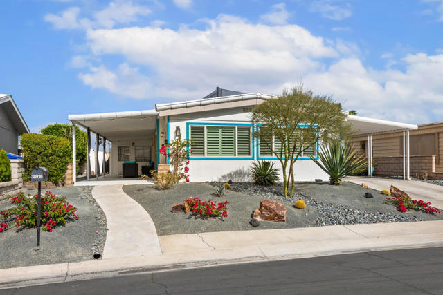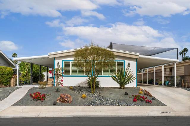 Welcome to this beautifully reimagined manufactured home, completely updated from floor to ceiling and truly move-in ready. This little gem has paid for/owned solar only 2 years old. The thoughtfully designed 2-bedroom, 2-bath home features a versatile floor plan with a spacious family room and a private primary suite with an adjoining sitting room or office, separated by stylish barn doors.The inviting glass double-door entry opens to a large covered patio--perfect for relaxing or entertaining. Inside, you'll find a bright open-concept layout showcasing a generous living and dining area with full views of the custom cook's kitchen. The kitchen is a standout with soft-close custom cabinetry, high-end quartz countertops, stainless steel appliances, a farmhouse sink, colorful tile backsplash, and seating for four opposite the range.Throughout the home, enjoy 12mm plank laminate flooring, new drywall, recessed lighting, new interior doors, mirrored closet doors, and dual-pane windows. Bedrooms are separated for added privacy. The primary bath offers dual quartz vanities and an oversized custom-tiled shower with glass enclosure. Plantation shutters throuhout.Freshly painted inside and out, this home combines modern comfort with exceptional value. Desert Greens offers incredible amenities for a low monthly HOA, including free golf, security, clubhouse, cable, internet, and a wide variety of social clubs and activities. A fantastic opportunity to enjoy resort-style living at an affordable price.