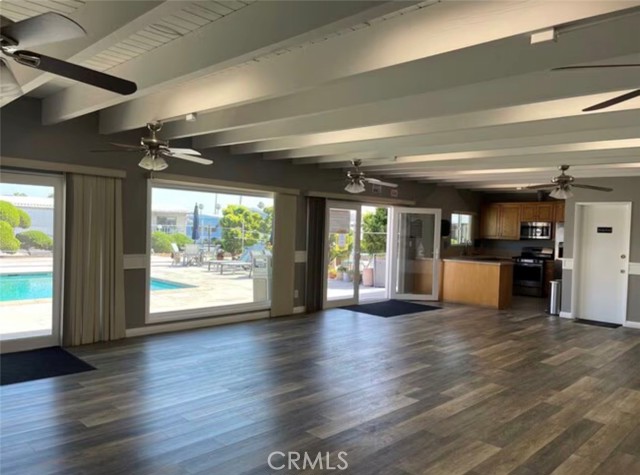 Located in Golden West Senior Park 55+, this well-maintained 1998 home offers 2 bedrooms and 2 bathrooms, including one full bath and one 3/4 bath. Recent updates include fresh interior and exterior paint and laminate flooring throughout. The kitchen features granite countertops, and the spacious primary bedroom includes a large walk-in closet. Additional hallway cabinetry provides extra storage, while dual-pane windows offer energy efficiency. A window A/C unit is included. Enjoy community amenities such as 2 pool areas, club house, laundry facility and gym. Situated on a desirable corner space, the property offers one of the largest fenced private backyards in the community with mature guava, lemon, and tangerine trees, plus added privacy. Conveniently located near shopping, dining, and freeway access.