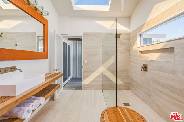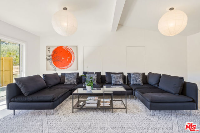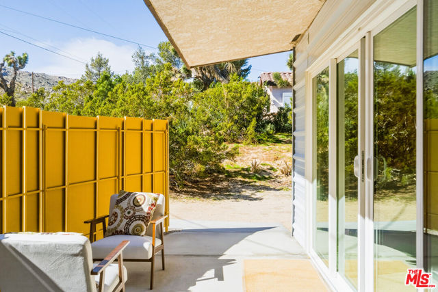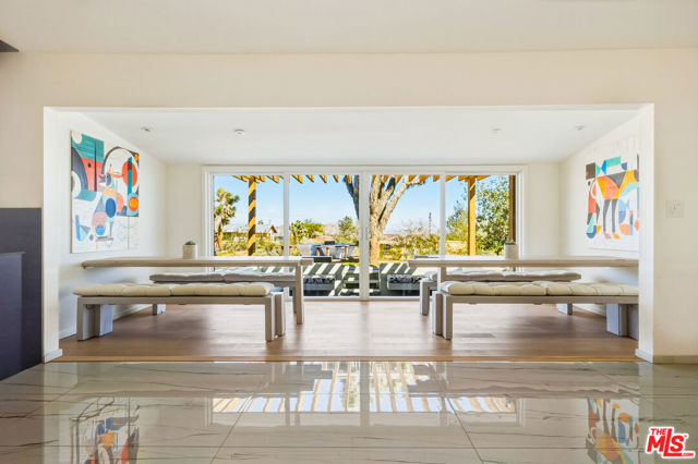 Set on a half-acre at the quiet end of a road in Friendly Hills, Desert Star offers a rare sense of peace at the edge of Joshua Tree National Park. At 3,500 feet in elevation, this Joshua Tree home enjoys cooler desert air, expansive night skies, and direct access to neighborhood hiking trails - an ideal setting for those seeking privacy, wildlife, and uninterrupted views. A collaboration between designer/builder Todd Patterson and Argentinian architect/artist Sol Sanchez, the property blends sculptural architecture with grounded, desert-informed materials. The main residence spans approximately 2,700 square feet complemented by a 160 square foot art studio. Six exterior patio spaces totaling 900 square feet extend the living experience outdoors including a shaded loggia garden, a sunken social patio, three reclaimed-beam pergolas, and a wood deck with two modern soaking tubs positioned for star-filled evenings. Inside, the layout features a pivot-door foyer entry, a generous great room anchored by a modern wood-burning stove, a formal living area, and a dedicated dining room. Three bedrooms each boast en-suite baths, alongside a well-placed powder room. The Japanese inspired kitchen is designed for both beauty and function, supported by a server and wine closet. Large format porcelain tile floors run through the main living areas, while new carpet softens the bedrooms. Systems are thoughtfully upgraded, including a 22-panel PV solar array, fiber optic internet, Nest thermostat, forced-air climate control, tankless LP water heater, water filtration system, new septic, and a SmartLock entry. A two-space carport, storage shed, dedicated future pool space, and an outdoor fire pit complete this Joshua Tree retreat.