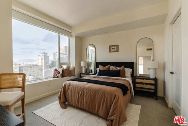 Positioned on the coveted southwest corner of TEN50LA, Residence 1901 sits within the building's most sought-after corner stack, offering sweeping, unobstructed views of the Downtown skyline, the Hollywood Hills, and even the iconic Hollywood Sign. Floor-to-ceiling glass walls place the skyline front and center, filling the home with natural light from morning to sunset. The open-concept layout is designed for both everyday living and easy entertaining, with generous living and dining areas centered around a chef's kitchen featuring Domus & Domus Italian cabinetry, a Bertazzoni cooktop, Liebherr refrigerator, Bosch panelized dishwasher, stainless-steel oven, and a Carrara marble waterfall island. Both the primary and guest bedrooms enjoy impressive city views, enhancing the sense of openness and light throughout the home. The primary suite offers a calm retreat with automated blackout shades, a spacious walk-in closet, and a spa-inspired bath with dual vanities and refined finishes. Privately positioned on the opposite side of the residence, the secondary bedroom provides excellent separation and includes its own full bathroom, making it ideal for guests or a home office. TEN50LA residents enjoy a full range of amenities including 24-hour concierge and security, a resort-style pool and spa, fitness center with Peloton bikes, private theater, business lounge, and resident entertaining spaces. Two dedicated parking spaces complete the offering. Located in the heart of South Park, just moments from LA Live, Crypto.com Arena, and some of Downtown's best dining and entertainment, this residence offers elevated city living in one of DTLA's premier full-service buildings.