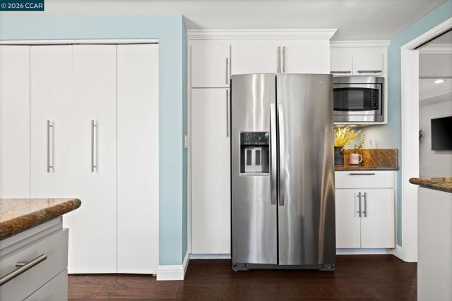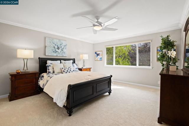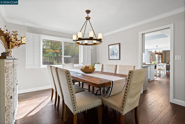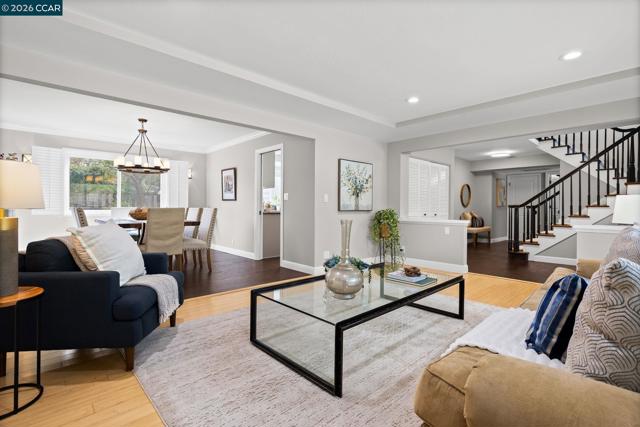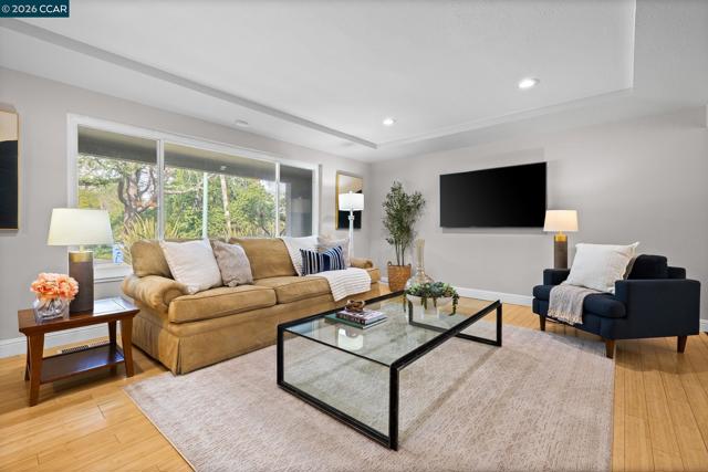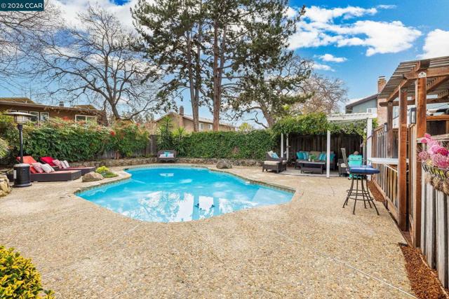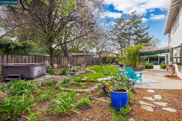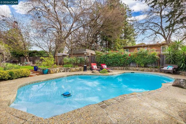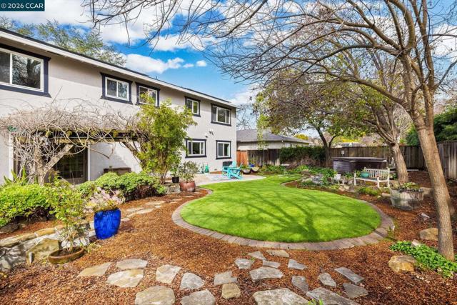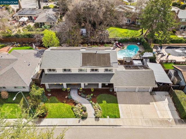 Expansive 5 bedroom Walnut Creek home with owned solar, generous living spaces, 3-car garage & an ideal floor plan for everyday living. A private backyard retreat features a pool, hot tub & mature landscaping for year-round outdoor living. Inside, a bright living room with large picture windows flows into the formal dining room, connected yet defined spaces ideal for gatherings. The kitchen offers abundant cabinetry, generous counter space & pantry, opening to the breakfast nook & family room. A garden window overlooks the yard & a built-in desk adds practical workspace. The family room, anchored by a fireplace, opens directly to the patio for seamless indoor-outdoor flow. A half bath & spacious laundry/utility room with built-in counter & storage complete the main level. Upstairs, the primary suite offers generous proportions, a large walk-in closet & private ensuite bath with dual vanities & spacious shower. Four additional bedrooms share a well-appointed bath, providing flexibility for family or guests. The backyard features expansive decking, multiple seating areas, pool, hot tub & lemon + lime trees, designed for both entertaining & everyday enjoyment. Top-rated schools, including walkable to Bancroft Elementary, plus minutes to shopping, dining, BART & freeway access.