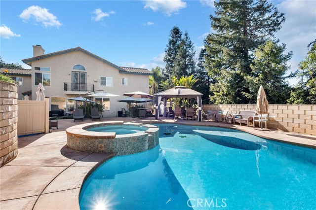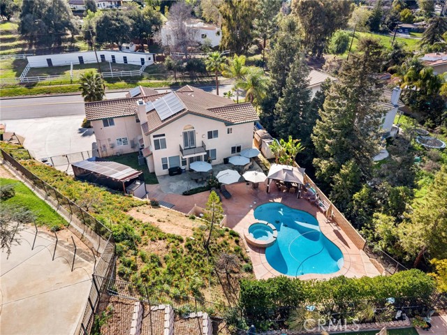 Welcome to this exceptional South Redlands estate offering nearly 3,700 square feet of living space on almost half an acre in one of the area’s most desirable neighborhoods. With 5 bedrooms and 3.5 bathrooms, this spacious home blends functionality, comfort, and timeless style. Step inside to a grand formal living room featuring vaulted ceilings and an abundance of natural light, seamlessly connected to the formal dining room—perfect for hosting gatherings. The expansive kitchen is designed for both everyday living and entertaining, complete with generous cabinet space, center island, eat-at bar, and large windows overlooking the backyard. The kitchen opens to a spacious family room, creating an ideal open-concept layout. Flooring throughout includes a mix of tile, vinyl, and carpet. The versatile floor plan features two bedrooms downstairs and three bedrooms upstairs. A loft/bonus room overlooks the formal living room, offering additional space for a home office, media room, or play area. The primary suite is a true retreat with vaulted ceilings, private deck access, dual sinks, a large walk-in closet, and a spacious en-suite bathroom. Step outside to your private backyard oasis. Enjoy multiple seating and entertaining areas across beautifully designed multi-level grounds, mature landscaping, a built-in BBQ island with refrigerator, and an inviting in-ground pool and spa. The expansive lot also offers RV parking and plenty of room to enjoy. Additional upgrades and features include security cameras, water softener system, upgraded tankless water heater, and HVAC systems and ductwork replaced approximately five years ago. This is a rare opportunity to own a spacious, well-appointed home in prime South Redlands with room to live, entertain, and grow.