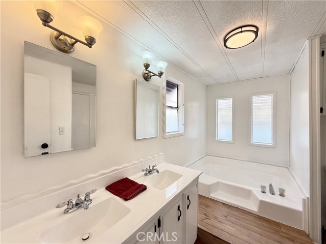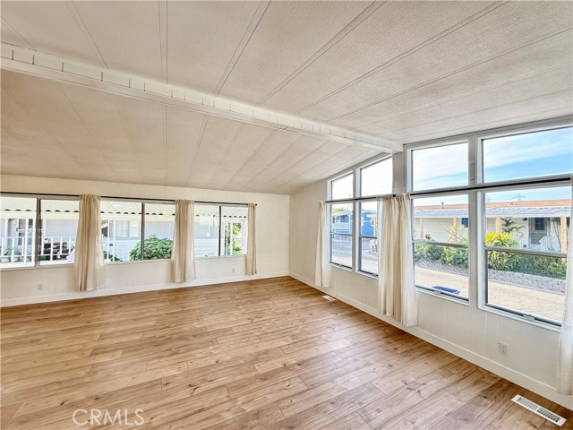 Discover exceptional value and modern comfort in this beautifully remodeled 1,440 square foot home, perfectly situated on a spacious lot within the desirable Windward Village Mobile Home Park. Step inside to find a bright and airy interior defined by vaulted ceilings, an abundance of windows, and brand-new luxury vinyl plank flooring throughout. The heart of the home is the upgraded kitchen, featuring crisp, freshly painted white cabinets and a full suite of included appliances. Entertaining is effortless with a massive Great Room, a formal dining area with a charming built-in hutch, and a separate family room that opens directly to the outdoors. The exterior is just as impressive, boasting a large covered porch, low-maintenance landscaping, and a generous, private backyard with two sheds-a rare find in park living. Complete with central A/C and a sprawling carport that fits three vehicles, this home is truly turnkey. Designed for family flexibility, the layout includes a convenient laundry room with a washer, dryer, and extra storage. The accommodations are generous, highlighted by a large primary suite offering natural light, a walk-in closet, and a spa-inspired bath with dual sinks, a soaking tub, and a separate shower. The guest bath has also been refreshed with new lighting and fixtures. This residence is located in the guard-gated, desirable Windward Village Mobile Home Community in Long Beach, a family-friendly haven packed with amenities. Residents enjoy a sparkling pool, basketball court, playground, and a vibrant community center with game rooms. Don't miss this opportunity to own a spacious, updated home in a beautiful, feature-rich neighborhood.