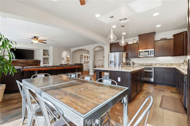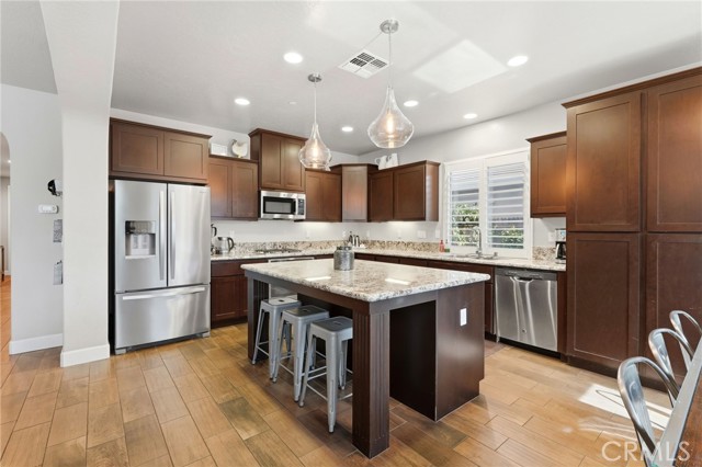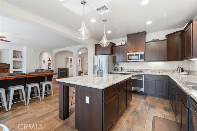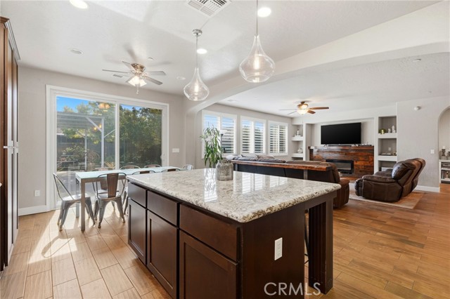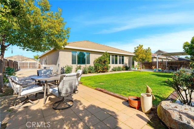 Beautifully maintained Northwest Visalia home located within walking distance to Manuel Hernandez Elementary School. This inviting property offers excellent curb appeal with a spacious three-car garage and gated side access, perfect for RV parking, storage, or recreational vehicles. Inside, you'll find an open and functional layout featuring tile flooring, abundant natural light, and seamless flow between the living, dining, and kitchen areas, ideal for both everyday living and entertaining. The kitchen is thoughtfully designed with rich cabinetry, granite countertops, stainless steel appliances, a center island with seating, and generous storage throughout. The spacious primary suite offers a peaceful retreat with ample room, dual vanities, a soaking tub, separate shower, and private vanity area. Additional bedrooms and living spaces provide flexibility for guests, work-from-home needs, or hobbies. Step outside to a beautifully landscaped backyard designed for relaxation and gathering, complete with lush lawn, mature landscaping, and a large covered patio perfect for outdoor dining year-round. With its desirable location, functional floor plan, and well-cared-for interior and exterior spaces, this home offers comfort, convenience, and pride of ownership throughout.