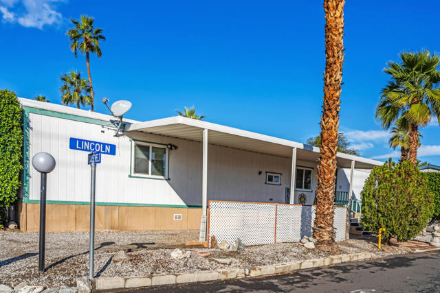 Located in the desirable Tramview Mobile Home Park, a historic 55+ manufactured home community established in the 1950s and known for its active lifestyle and central Coachella Valley location, this well-maintained home offers comfort, convenience, and value. Residents enjoy resort-style amenities including a pool and spa, clubhouse with kitchen and social spaces, shuffleboard courts, billiards, and organized community activities.This 2 bedroom, 2 bathroom manufactured home (1989, approx. 840 sq ft) is ideally situated within the community and features: In-unit laundry, Two parking spaces, Private front and back patios for outdoor desert living, Newer A/C and Furnace (2022), Newer Electrical Panel (2022), Newer Windows and Hot Water Tank (2024), Exceptionally clean and truly move-in ready condition. Tramview offers convenient access to shopping, dining, entertainment, and Palm Springs area attractions while maintaining a welcoming neighborhood feel. Note: Annual Lease Amount is $10,980 ($915 per month)