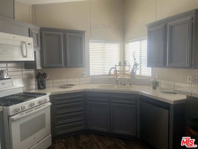Welcome to this light-filled, open 3-bedroom, 2-bath home, just under 1,800 sq. ft., offering a perfect blend of comfort and style. The high beamed ceilings in the living room create a grand, airy atmosphere, highlighted by a majestic wood-burning fireplace, the perfect centerpiece for cozy evenings. The generous ensuite primary bedroom features a walk-in closet, while the ample guest bedroom provides comfort and versatility for family or visitors.The third bedroom serves as a flexible bonus space, ideal as a den, office, or hobby room. Thoughtful built-ins and ample storage throughout make organization effortless, including a spacious laundry room. Entertain with ease in the dining room or at the breakfast bar, perfect for casual meals or hosting friends and family. Step outside to the covered front patio deck to enjoy your morning coffee, or take advantage of the corner lot with a spacious side yard that can be enclosed for additional outdoor entertaining, ideal for pets or gardening. A detached shed provides extra storage, and two-car covered parking adds convenience. Located in The Lakes at Hemet West, an active 55+ community, enjoy amenities including a golf course, clubhouse, swimming pool, spa, walking paths, fitness center, social events, and beautifully landscaped common areas. This is more than a home, it's a lifestyle, offering brightness, flexibility, and the charm of a highly sought-after neighborhood!