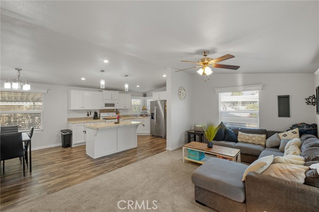 Welcome to Saddleback Mobile Home Estates, a gated all-age community in Hemet. This 2022-built manufactured home offers 3 bedrooms, 2 bathrooms, and 1,056 sq ft with a bright open floor plan connecting the living, dining, and kitchen areas. The primary bedroom includes a private en-suite bath, and two additional bedrooms provide space for guests, family, or a home office. Newer construction offers energy efficiency and low-maintenance living. Community amenities include a gated entrance, pool and spa, clubhouse, playground, basketball court, billiards room, library, BBQ and outdoor dining areas, plus RV and boat storage. Pet-friendly community. Conveniently located near schools, shopping, dining, and quick access to Domenigoni Pkwy.