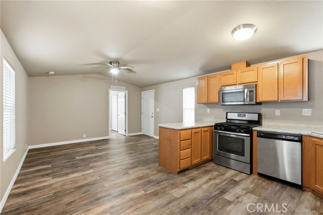 Welcome to this well-maintained 2015 Champion single-wide offering 2 bedrooms and 1 bathroom in the highly desirable Ranch Thousand Oaks Park. With affordable space rent of just $995 per month, this home presents an excellent opportunity for comfortable and budget-friendly living. Inside, you’ll find updated flooring throughout and fresh interior paint, creating a clean and modern feel from the moment you walk in. The bright and inviting kitchen features stainless steel appliances, ample cabinetry for storage, and plenty of counter space for meal prep. The home also includes the convenience of indoor laundry with a stackable washer and dryer, making daily living effortless. Both bedrooms offer comfortable space and natural light, while the well-appointed bathroom is clean and functional. This lovingly maintained home is truly move-in ready and ready for its next owner. Don’t miss your opportunity to own this charming home in a sought-after community
